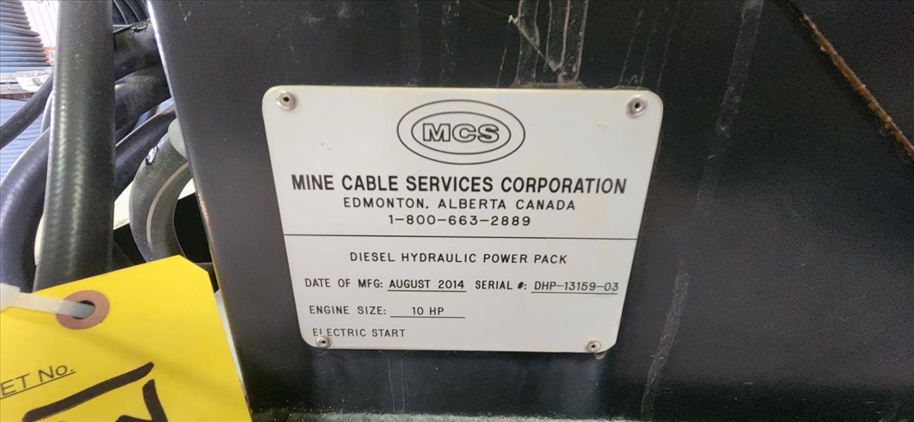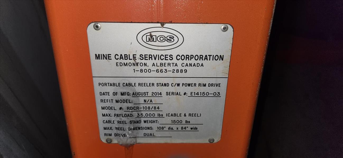 MCS portable cable realer stand, mod. RDCR-108-84 (2014), 35000 lbs/108 in. dia. X 84 in. cap. w/ power dual rim drive c/w MCS diesel hydralic pack, ser. No. DHP-13159-03 (2014), 10 hp [TAG 1367/1372 / LOC 980532-0]