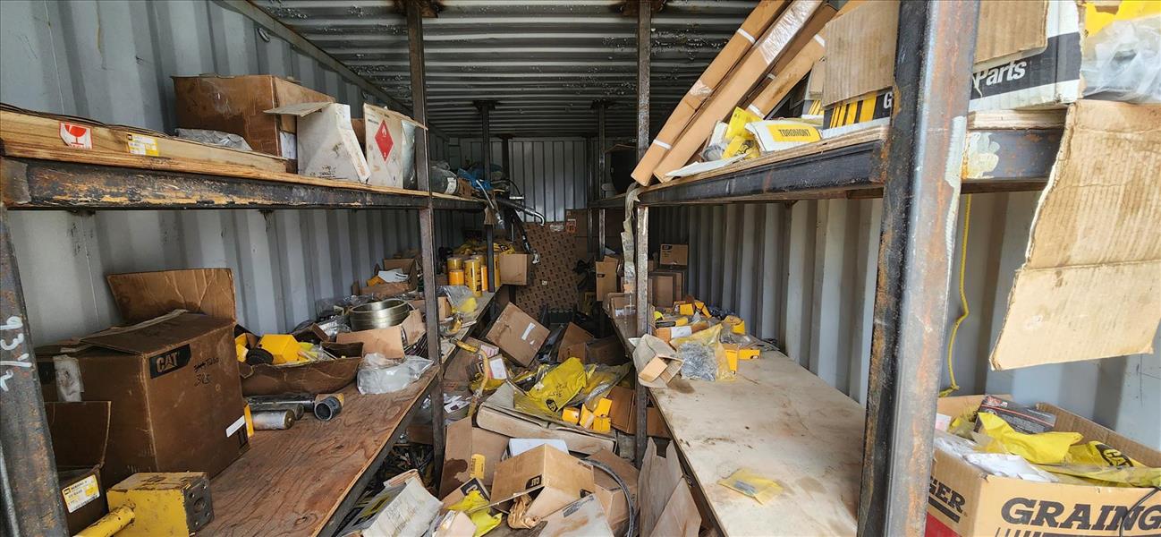 sea container, 20 ft. c/w contents: shelving, spare CAT parts, etc. [TAG 1086 / LOC 041553-6]