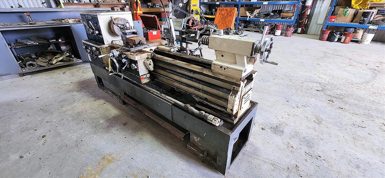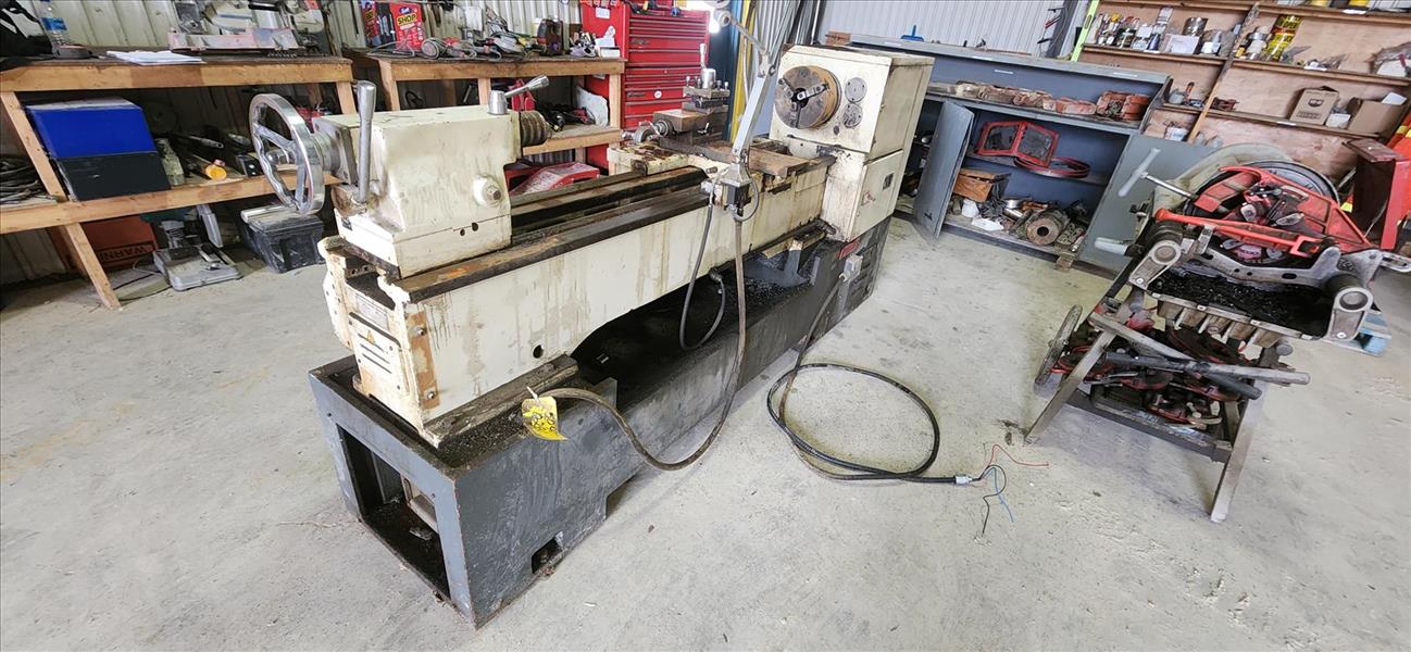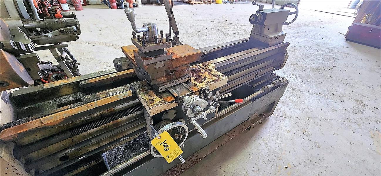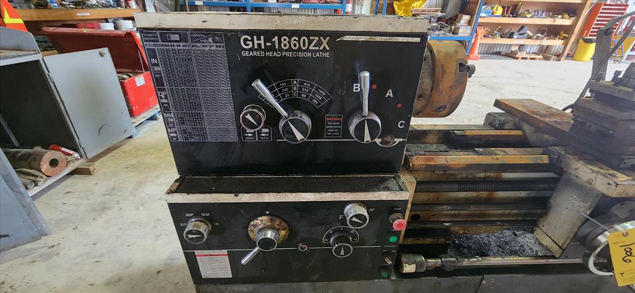 gearhead precision lathe, mod. GH-1860ZX, 55 in. center, 10 in. swing, 3.24 in. thru, 10 in. chuck c/w tooling, cabinet and job box [TAG 1006 / LOC 556202-4]