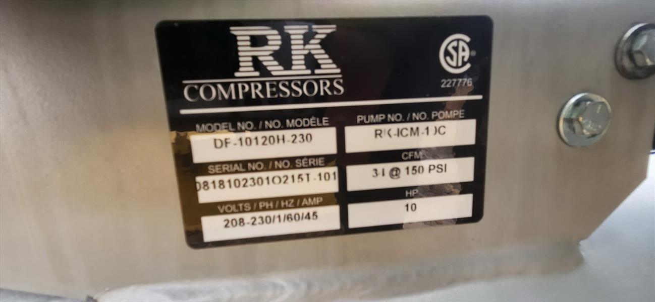 RK air compressor, mod. DF-10120H-230, 10 hp, tank mounted [TAG 1516]