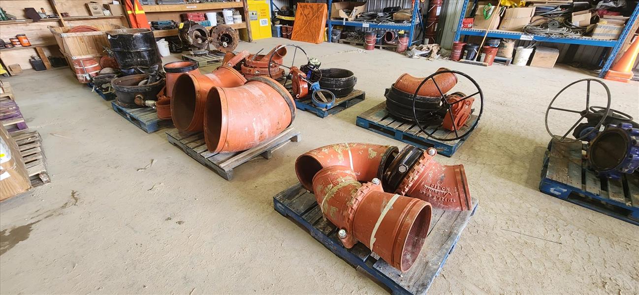 (9 skids) misc. Victaulic pipe fittings, clamps, valves, etc. [TAG 1432 / LOC 466172-2]
