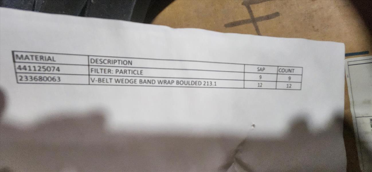 misc. spare parts: V-belts, filters, etc. [TAG 1098 / LOC 146257-7]