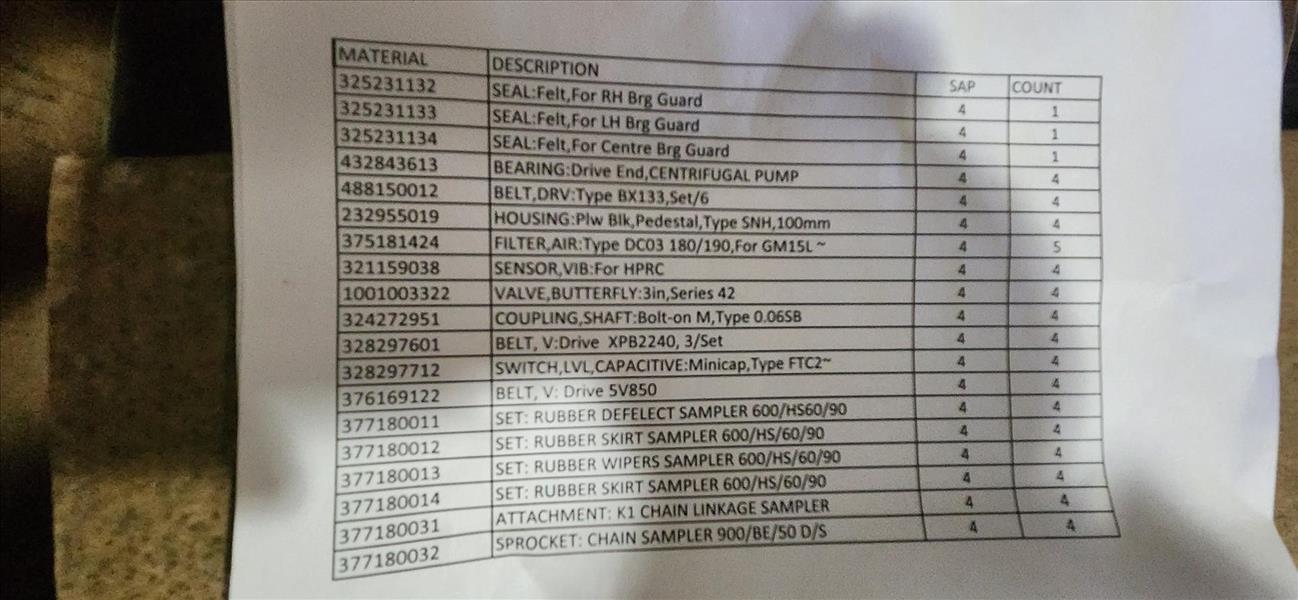 misc. spare parts: V-belts, seals, rubber skirts, etc. [TAG 1100 / LOC 146257-7]
