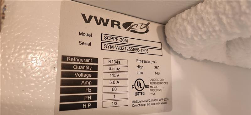 VWR Isotemp Freezer mod. SCPPF-20M, S/N SYM-WB21265856-1205