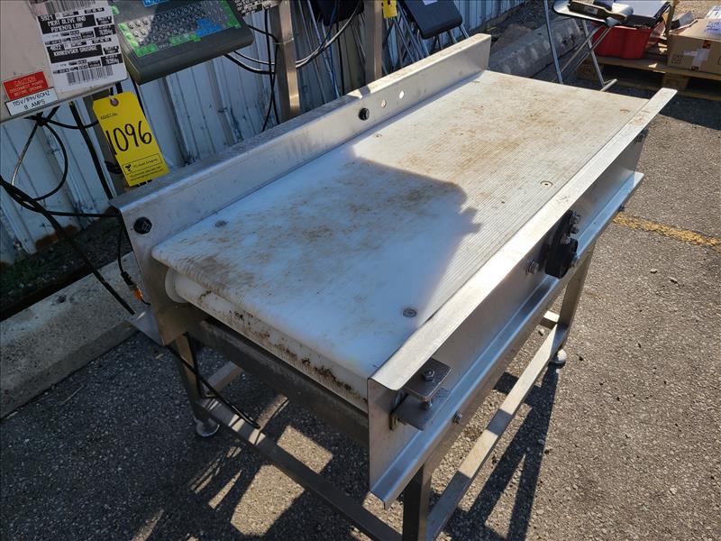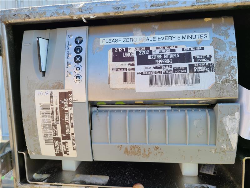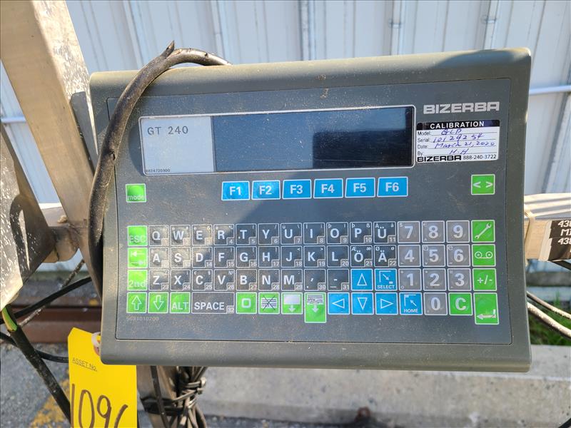 Bizerba retail label printer, model GT 240, S/N 10129254, w/ industrial label printer, conveyor, approx. 46 in. x 18 in. stainless steel (Tag no. 1096) (may require repair)
