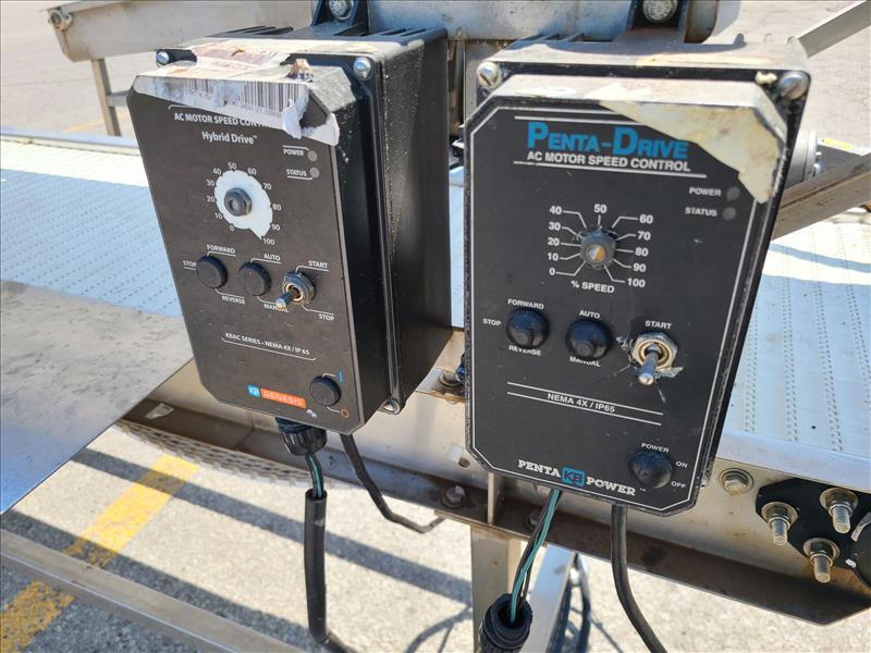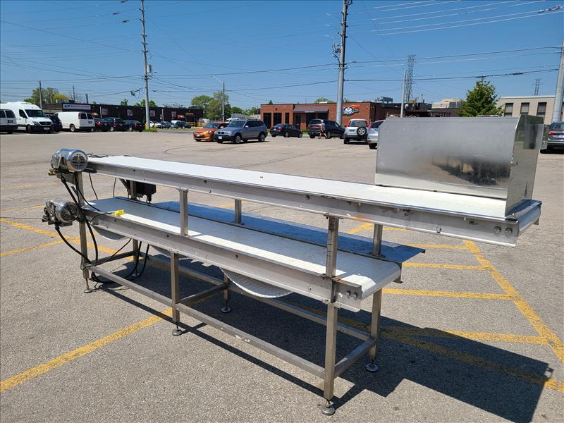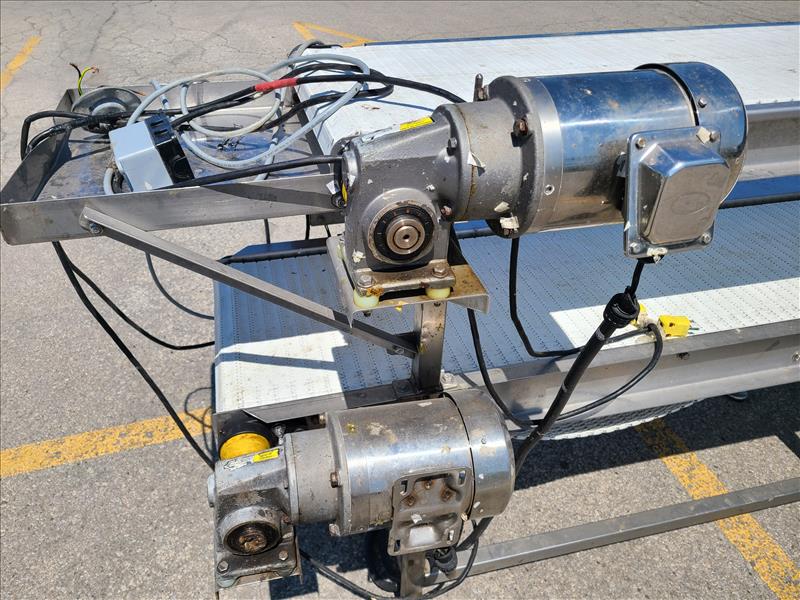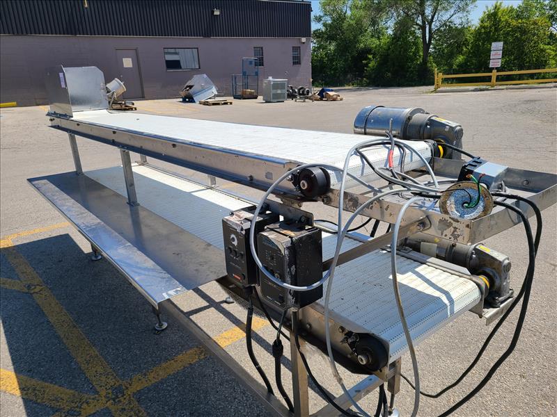 conveyor, approx. 134 in. x 18 in. bottom conveyor, approx. 120 in. x 18 in. plastic belts, power, stainless steel (Tag no. 1013)