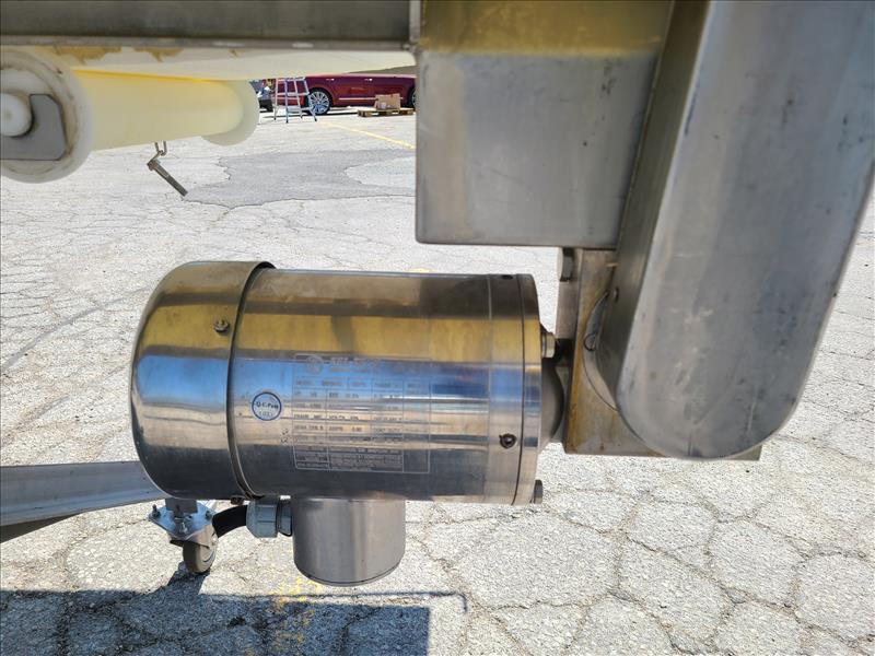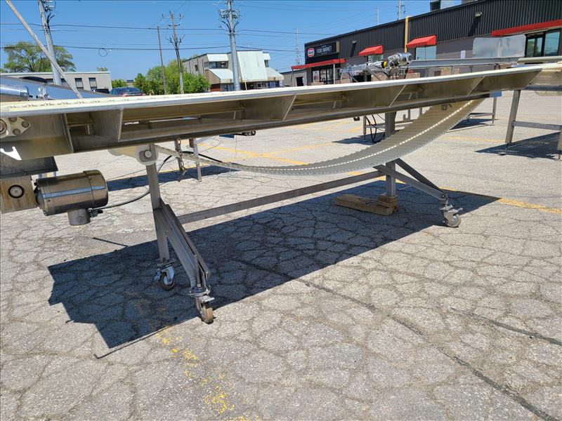 conveyor, approx. 120 in. x 14 in. plastic belt, power, casters, stainless steel, w/ (2) cutting boards, approx. 120 in. x 16 in. (Tag no. 1017)