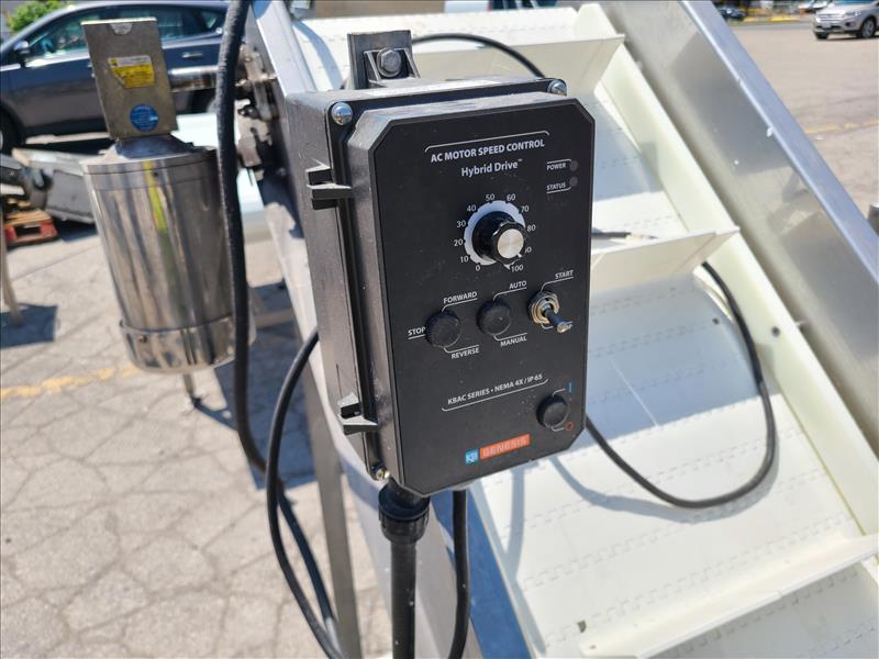Incline conveyor, approx. 60 in. x 18 in. fluted belt, power, stainless steel (Tag no. 1018)