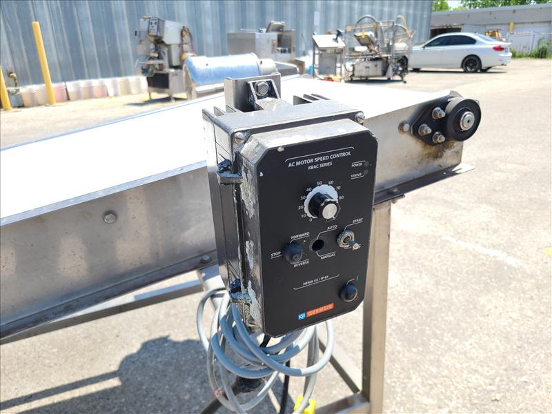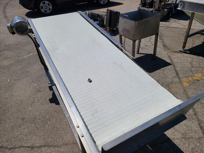 Incline conveyor, approx. 78 in. x 26 in. plastic belt, power, stainless steel (Tag no. 1021)