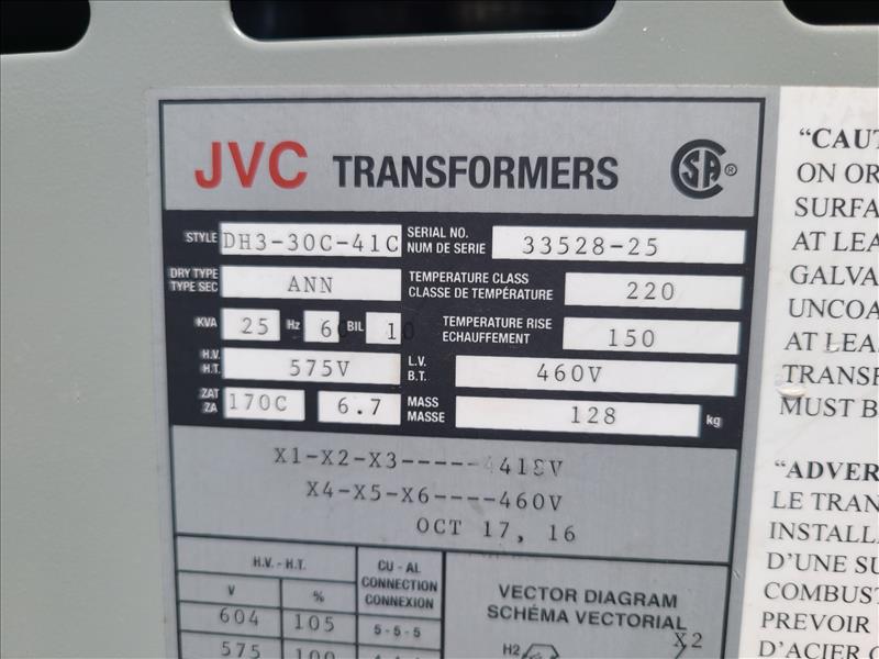 JVC Transformer, 25kva, 60Hz (Tag no. 1009)