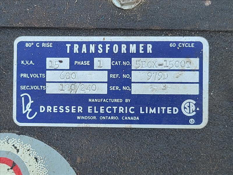Dresser electric transformer, 15kva (Tag no. 1165) (may require repair)