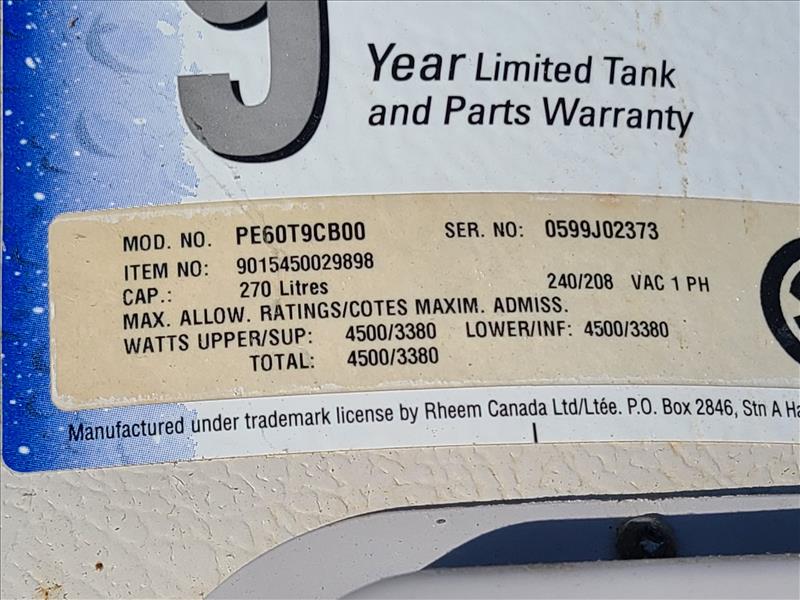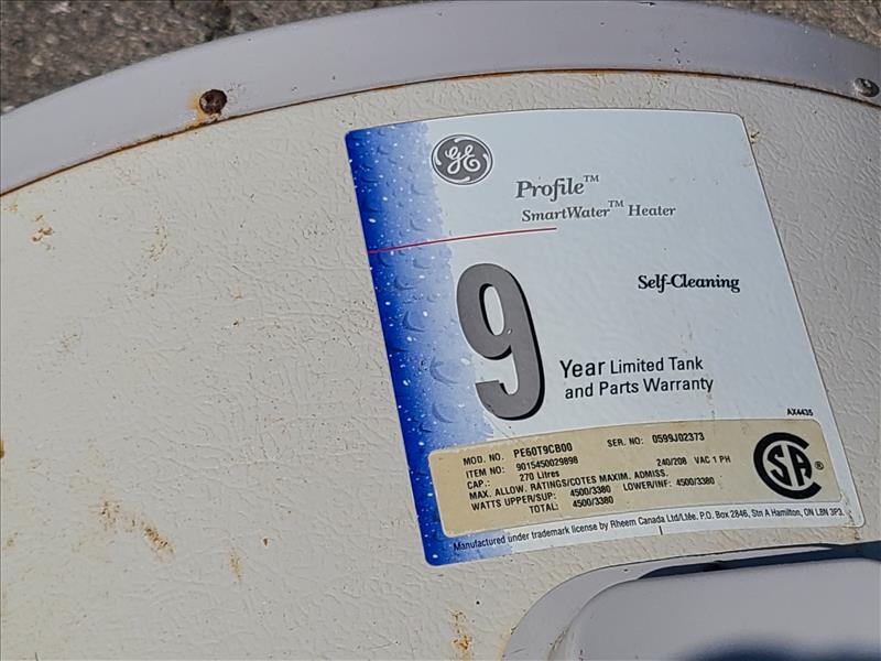 GE smartwater electric water heater, model PE60T9CB00, S/N 0599J02373 (Tag no. 1087) (may require repair)