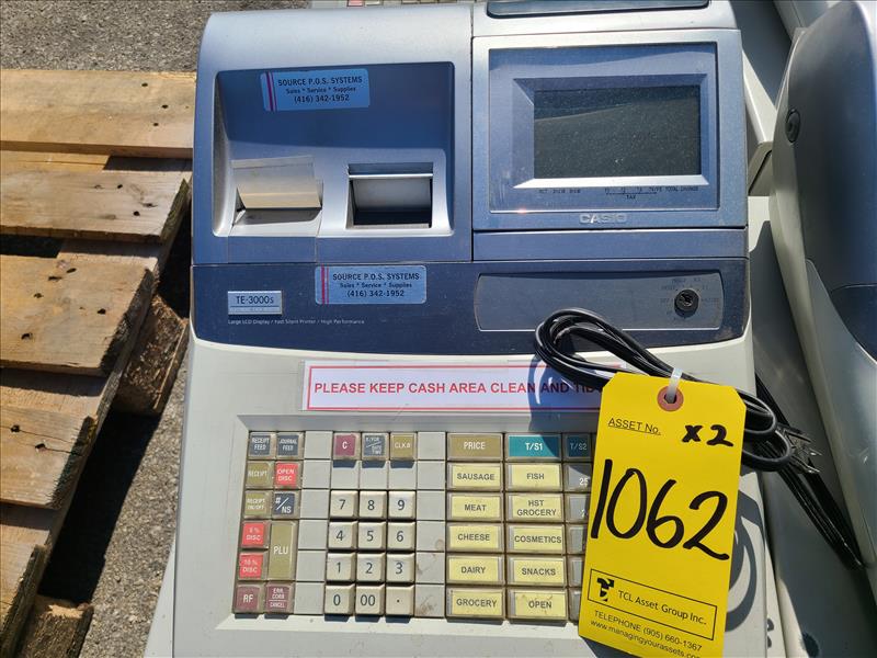 (2) Casio electronic cash registers, model TE-3000S w/cash drawers model DL-3616 (Tag no. 1062)