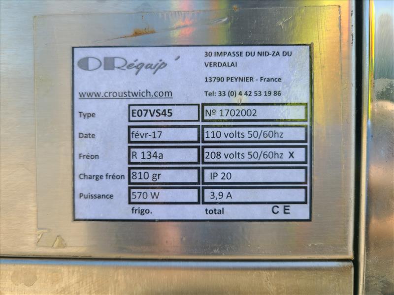 Croustwich showcase display, model E07VS45, S/N 1702002 (Tag no. 1046)