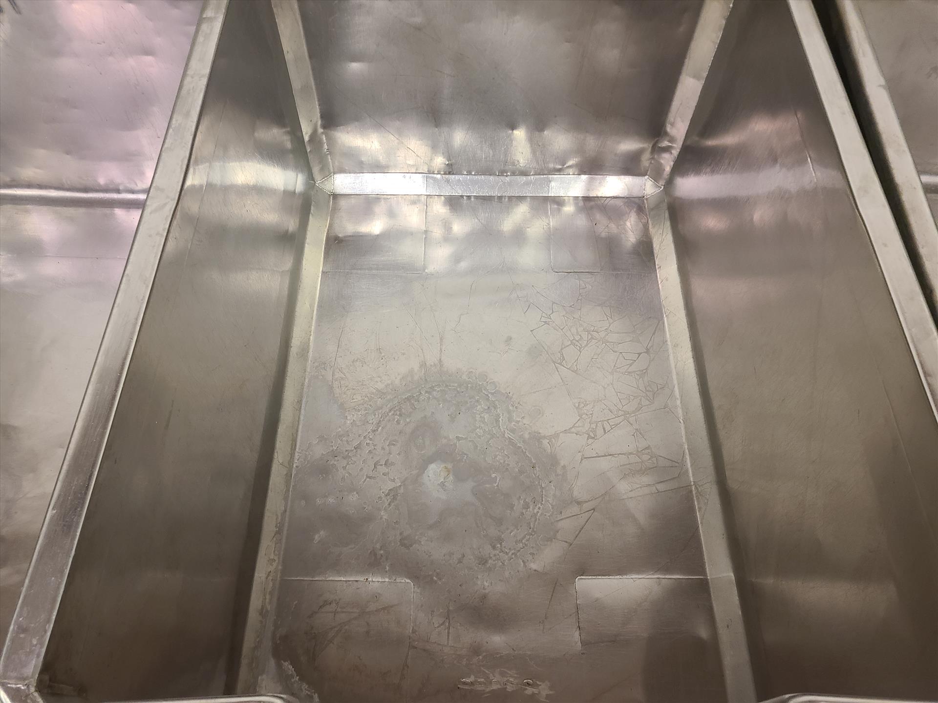 tote, stainless steel, approx. 36 in. x 52 in. x 26 in. deep w/ casters [Loc. Anti-Deboning]