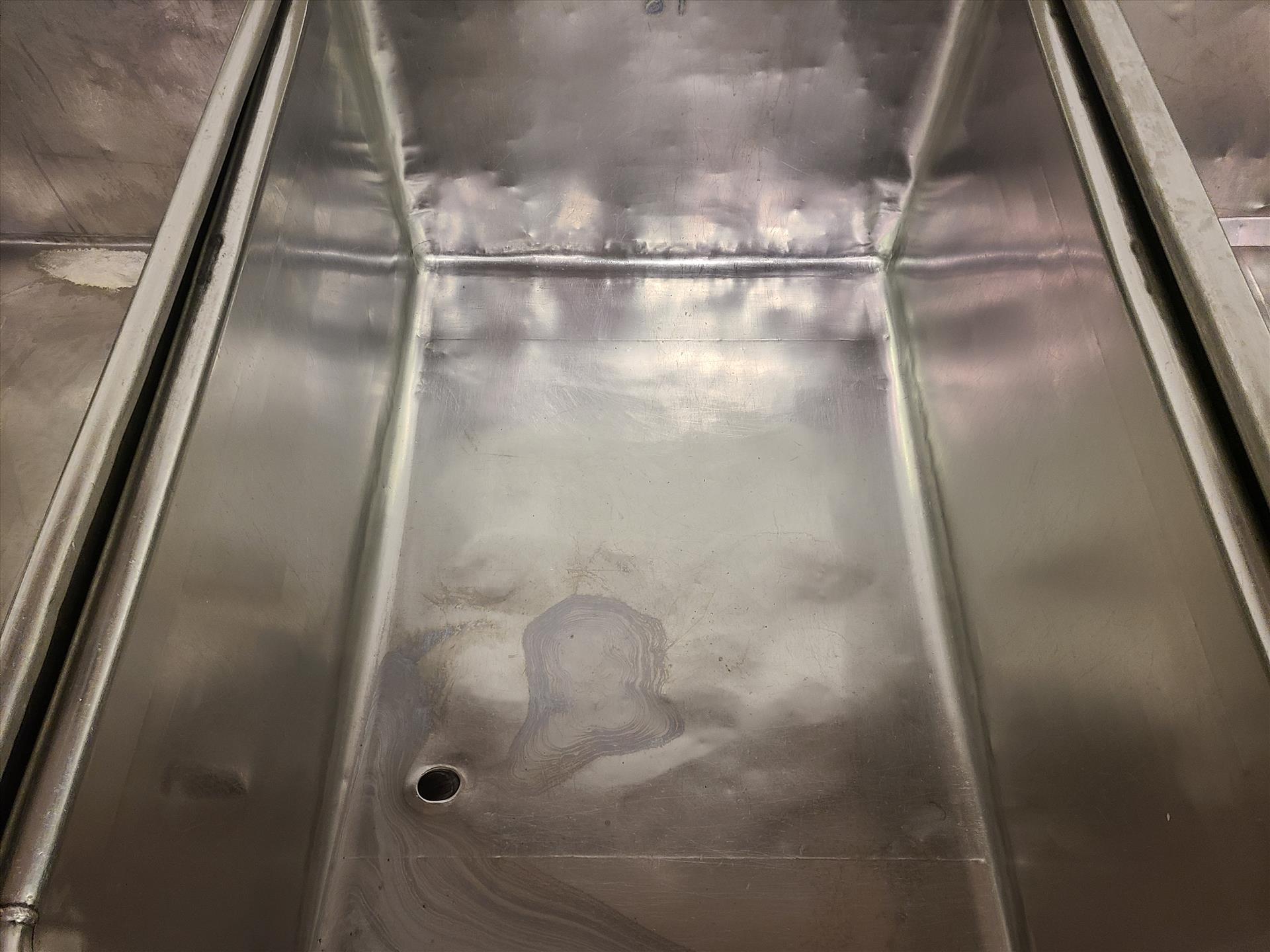tote, stainless steel, approx. 36 in. x 52 in. x 26 in. deep w/ casters [Loc. Anti-Deboning]