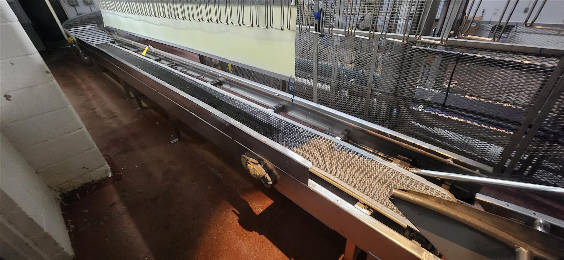 conveyor, belt, inclined, stainless steel frame, power, approx. 14 in. x 22 ft. [Loc. Live Rec./Kill]