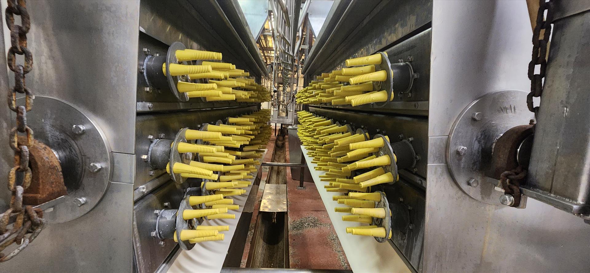 Systemate de-featherer, mod. 9/3, stainless steel w/ (12) 1.5 hp motors [Loc. Live Rec./Kill]