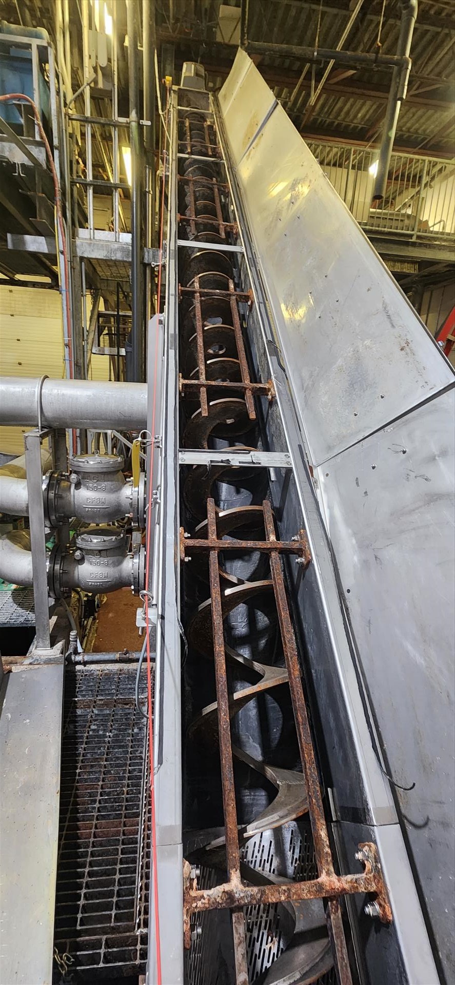Atara screw conveyor, mod. AE-U355, inclined, power, approx. 12 in. dia. X 26 ft., stainless steel c/w 12 ft. horizontal extension [Loc. Offal]