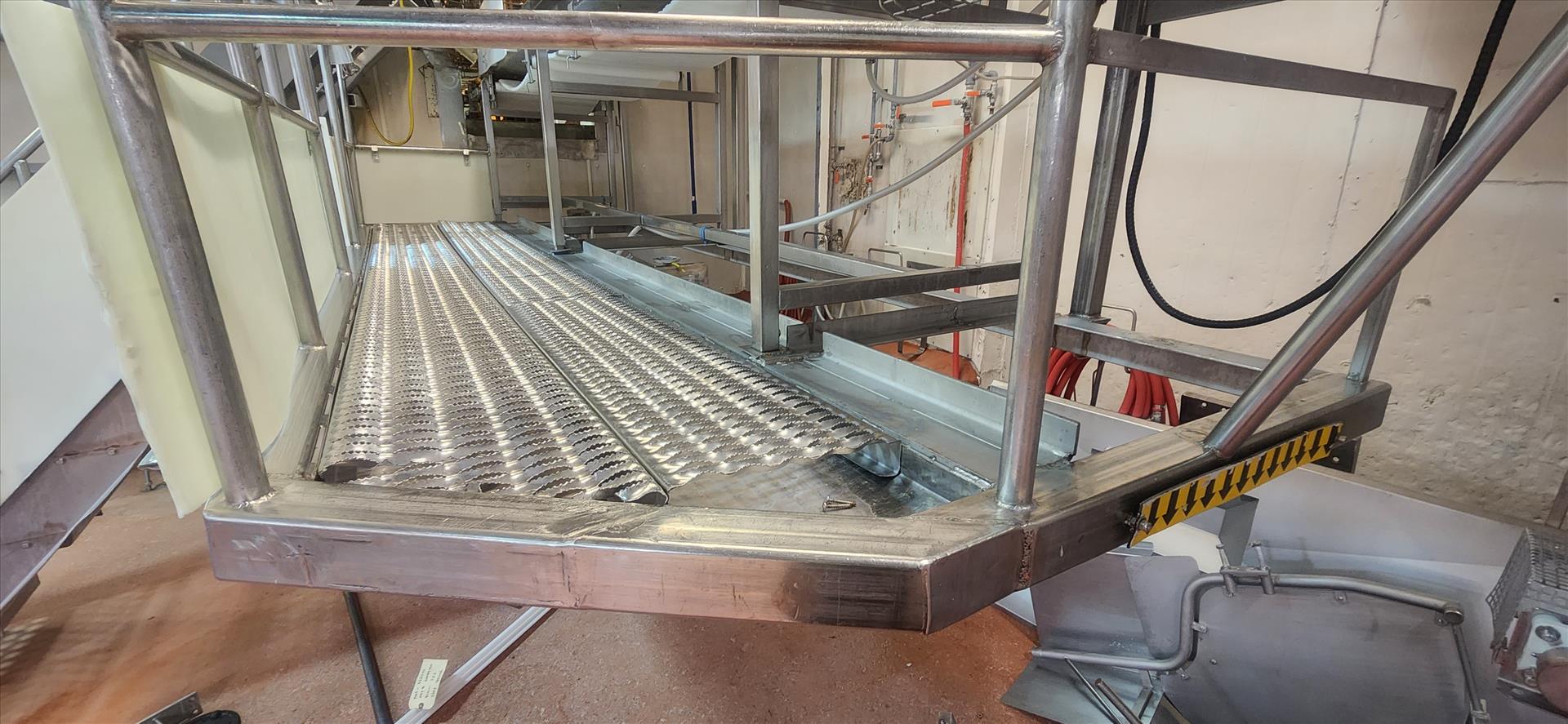 mezzanine, stainless steel, approx. 58 in. x 138 in. x 52 in. high (Subject to confirmation. The winner will be determined based on the sum of bids on lots 177 to 189B vs bid on bulk lot 176A) [Loc. Cut-Up]