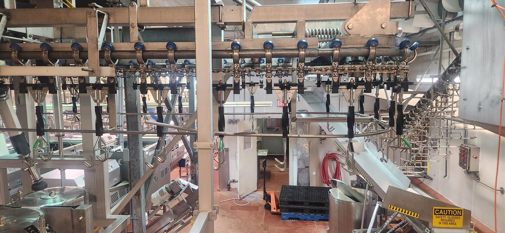 (approx. 300 ft.) overhead conveyor throughout Cut-Up Line c/w (approx. 300) stainless steel shackles at 12 in. spacing on logging 1 in. sanitrack (Subject to confirmation. The winner will be determined based on the sum of bids on lots 177 to 189B vs bid on bulk lot 176A) [Loc. Cut-Up]