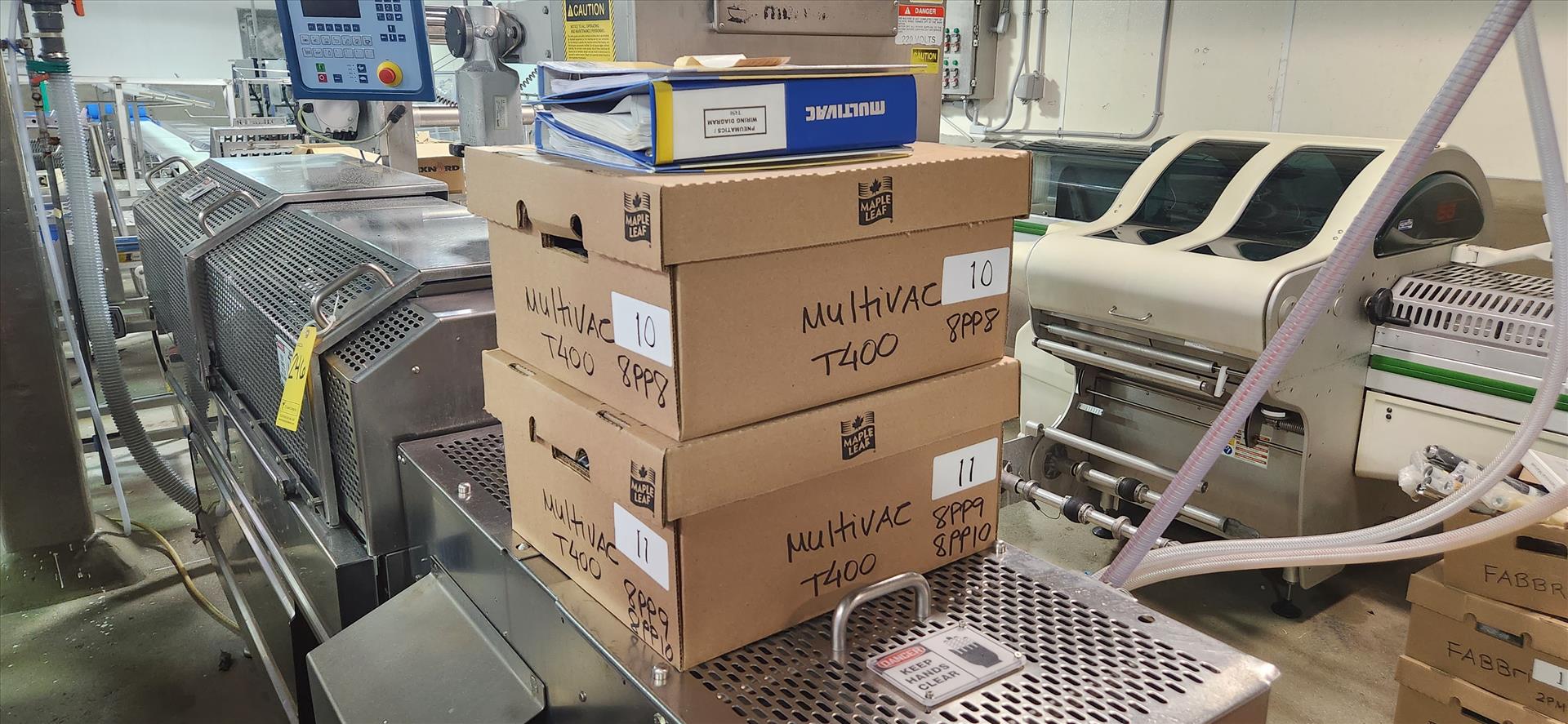 MultiVac tray sealer, mod. T400, stainless steel w/ infeed conveyor [Loc. Deboning]