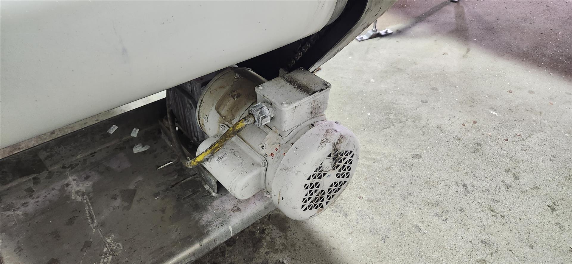 conveyor, belt, stainless steel frame, power, approx. 18 in. x 22 ft. w/ top roller conveyor, 18 in. x 19 ft. [Loc. Deboning]
