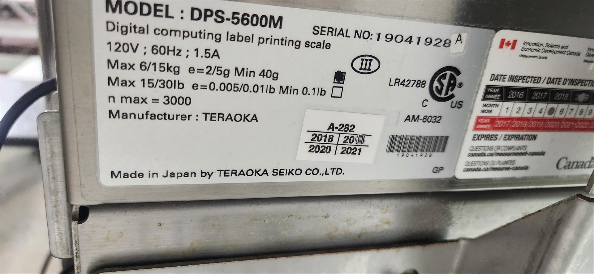 Teraoka Sieko digital prepack compounding scale printer, mod. Digi DPS-5600, 6-15 kg max. [Loc. Deboning]