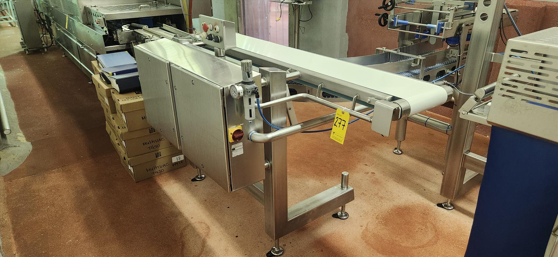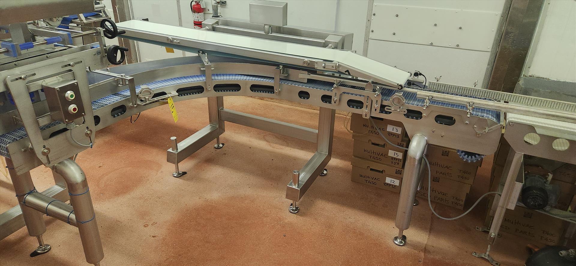Waldrop/Reiser tray denester/meat depositor w/ Portion-to-Pack mod. 112, screw denester mod. 125 and tray feeder mod. 238