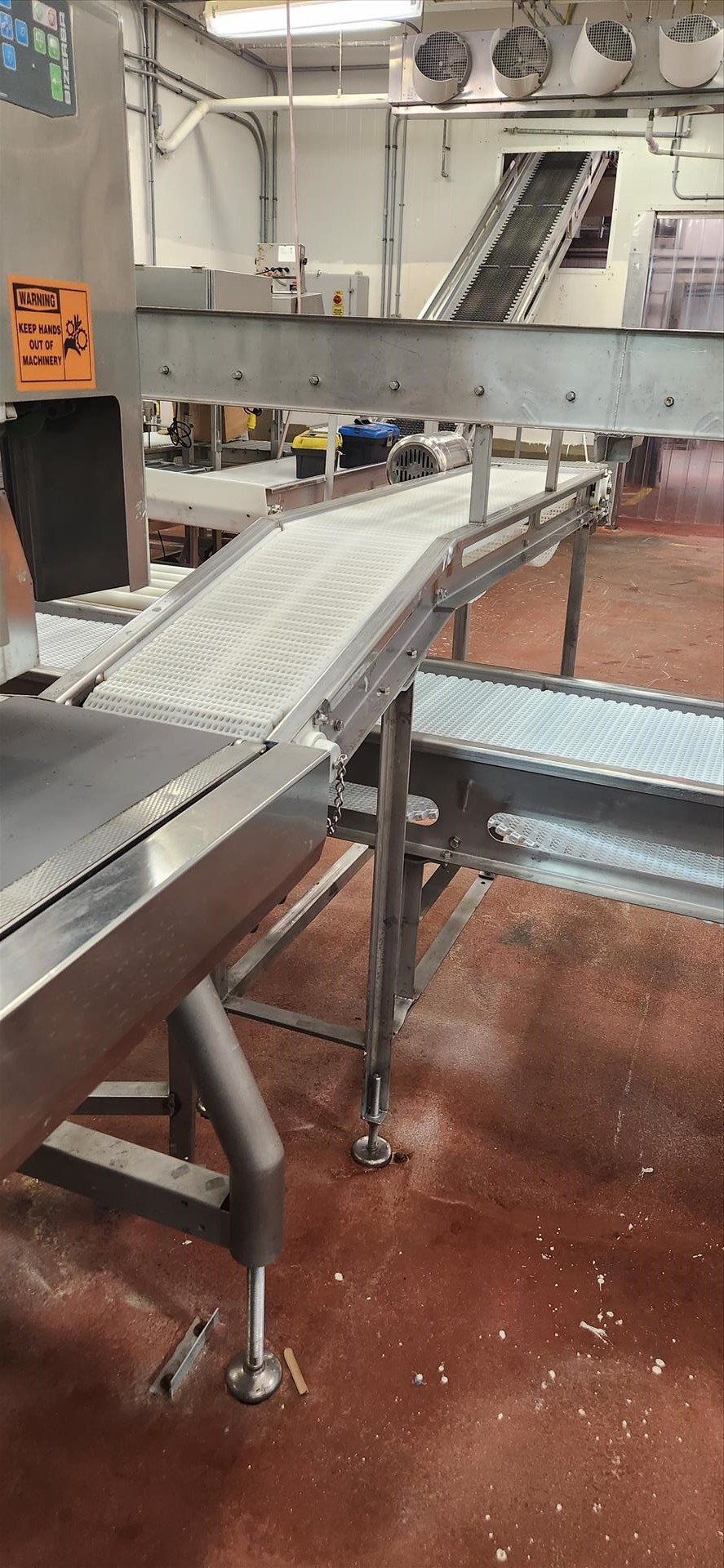conveyor, belt, inclined, stainless steel frame, wash down motor, approx. 10 in. x 7 ft. [Loc. Wrapping]