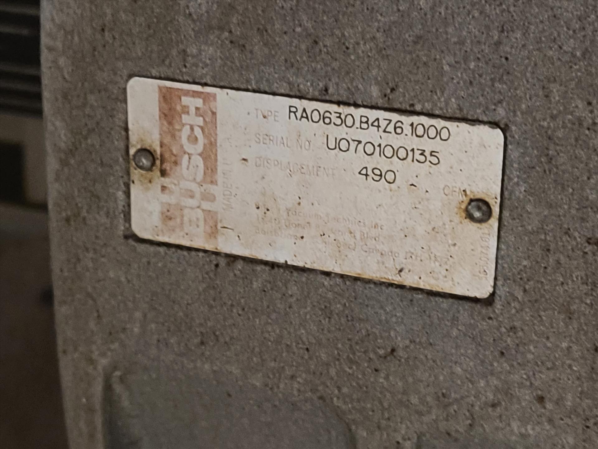 Busch rotary vane vacuum pump, mod. RA0630.B4Z6.1000, ser. no. U070100135, 490 CFM, 25hp, 575 volts, 60Hz [Loc. Chem. Stor.]