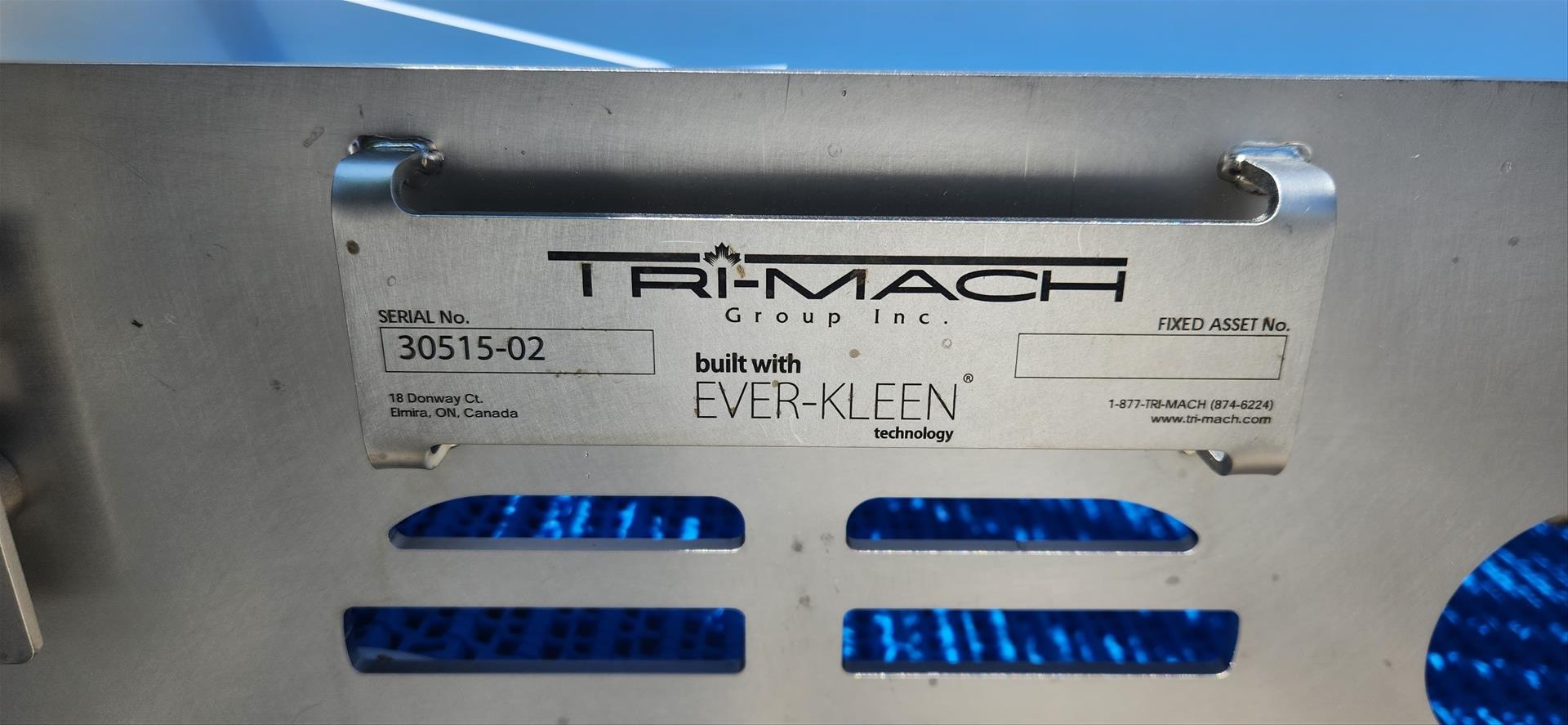 Tri-Mach Ever-Kleen conveyor, ser. no. 30515-02, belt, approx. 10 in. x 28 ft., stainless steel frame (no motor)