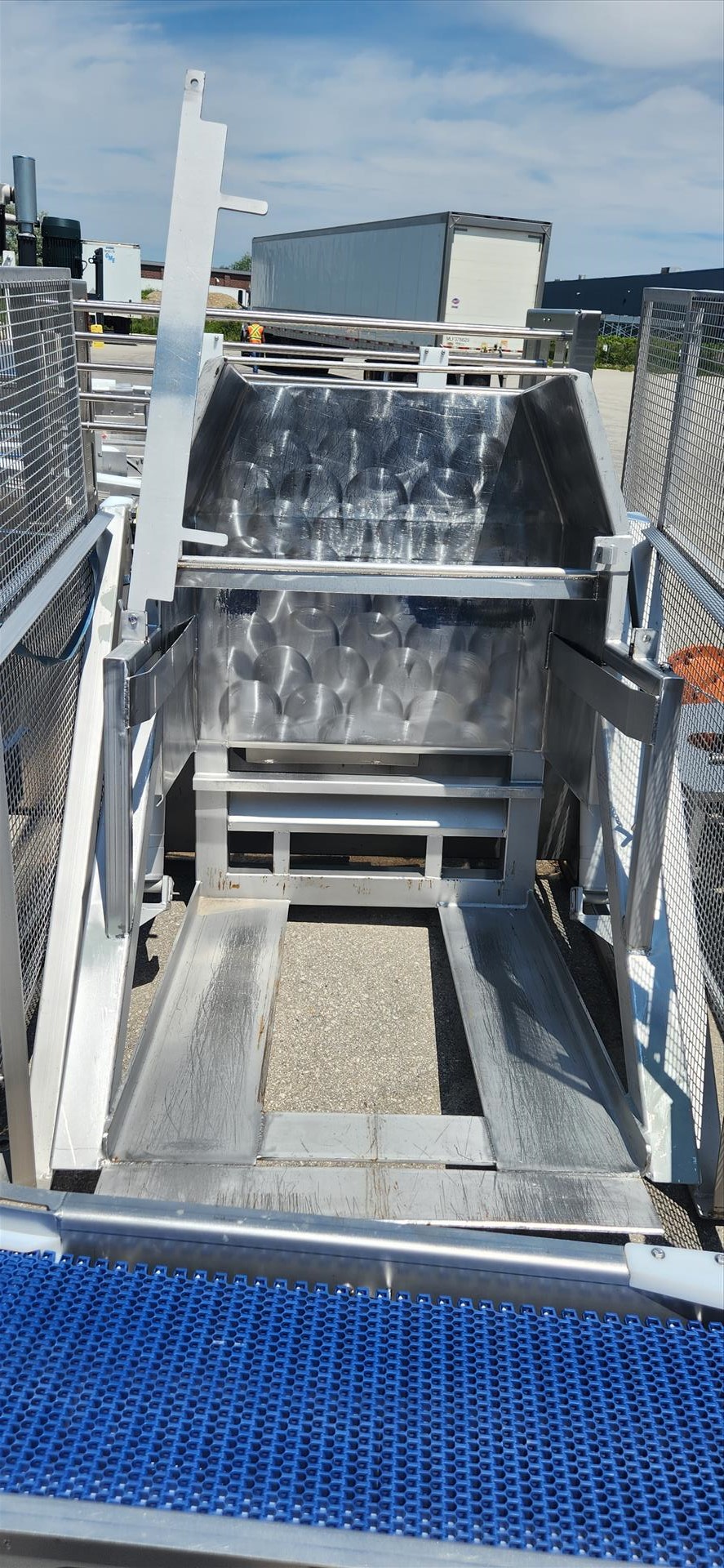 A-One tote dumper, mod. CBD-40, ser. no. 26205-2, approx. 41 in. x 58 in. x 46 in. dump height, 1000 kg cap., stainless steel
