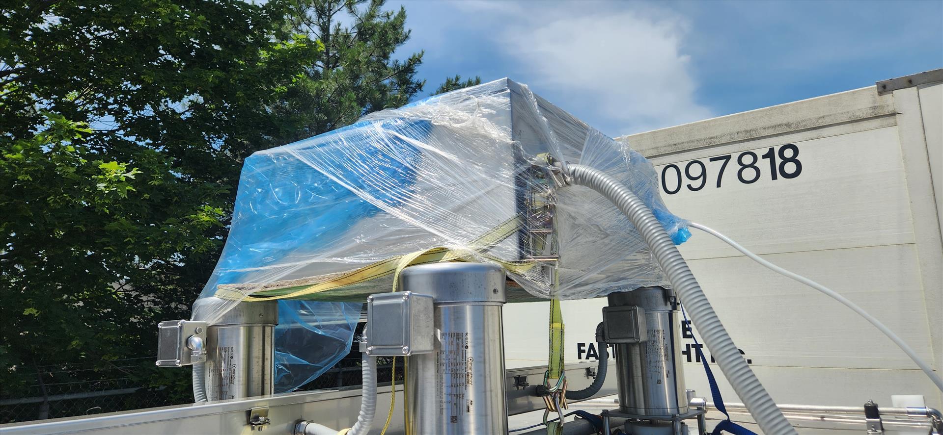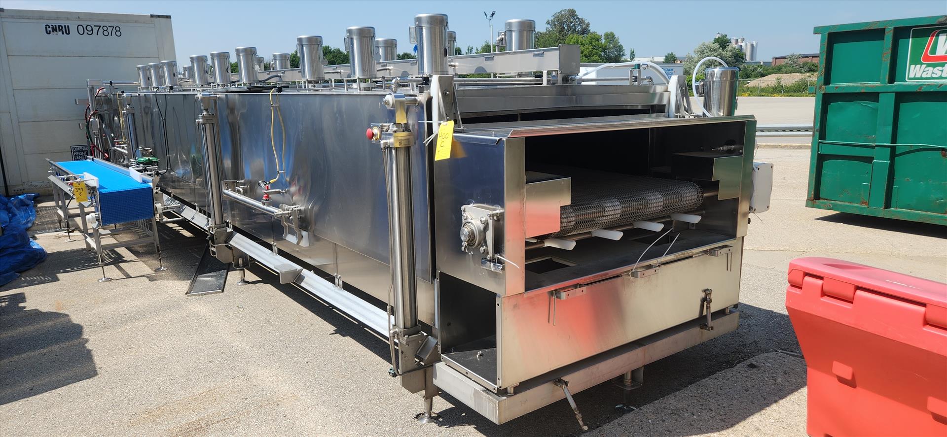 Cryogenic Syst. nytrogen tunnel freezer, mod. L2CSE, approx. 62 ft., stainless steel w/ Hager conveyors, (37) 1 hp wash-down motors and control panel (c/w Lot 400W, (2) Hager chain-mesh conveyors, ser. no. 522-20-1/2 (2020), 36 in. x 40 in., stainless steel (no motors))