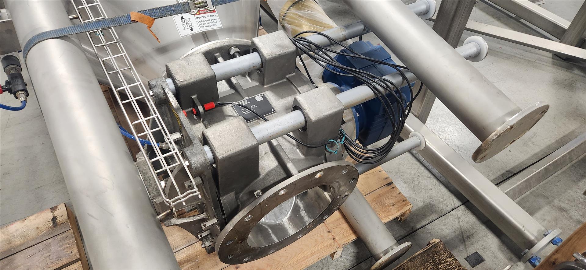 Schenck Process LLC filter, mod. V79925.B01, ser. no. 1100101957-2300 (2021), stainless steel c/w 2 hp air lock (pea and wheat blending)