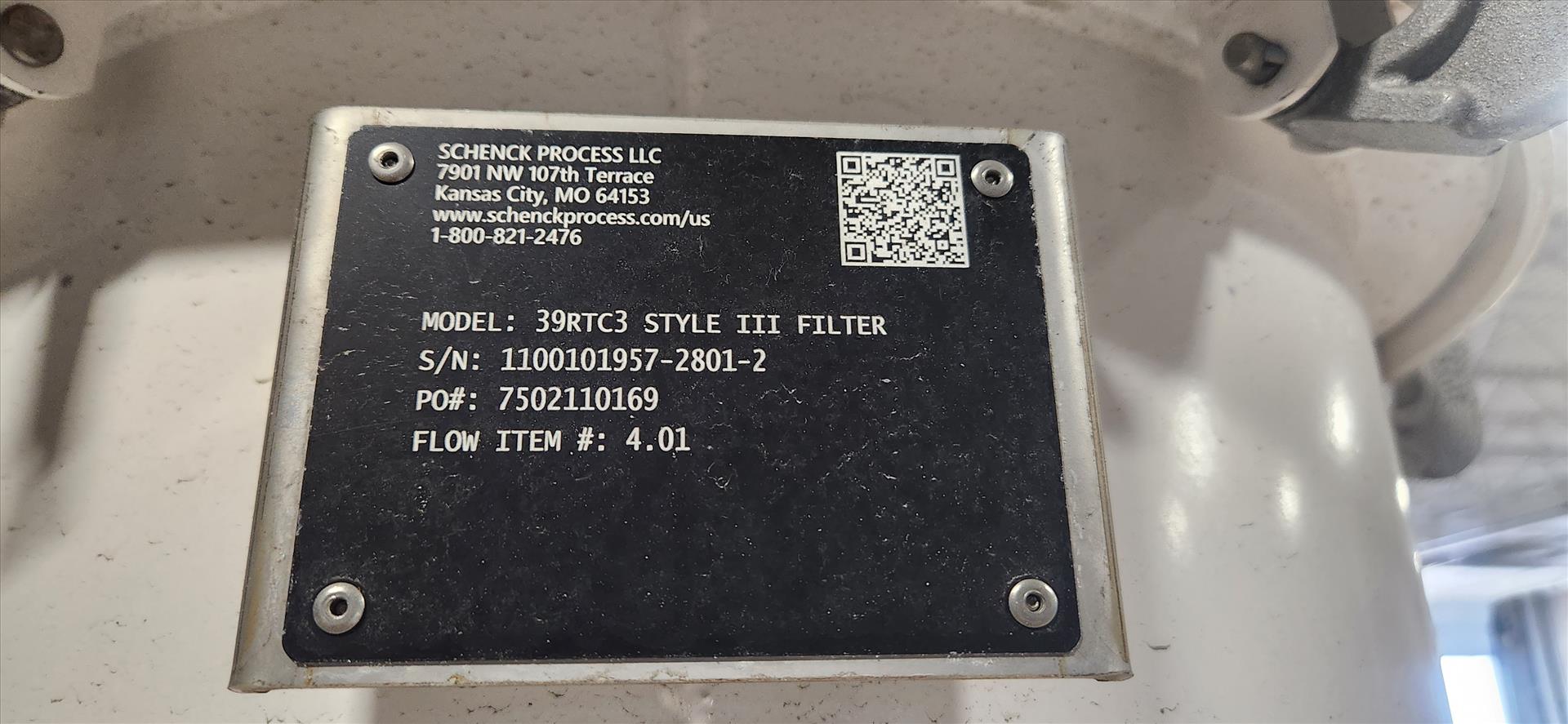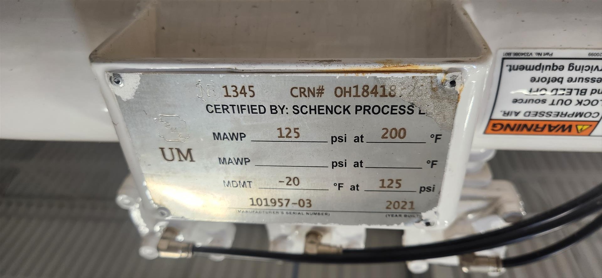 Schenck Process LLC Style III filter, mod. 39RTC3, ser. no. 1100101957-2801-2 (2021) 125 psi at 200F, 10 hp, Bindicator c/w 0.75 hp air lock and stand (pea and wheat blending)