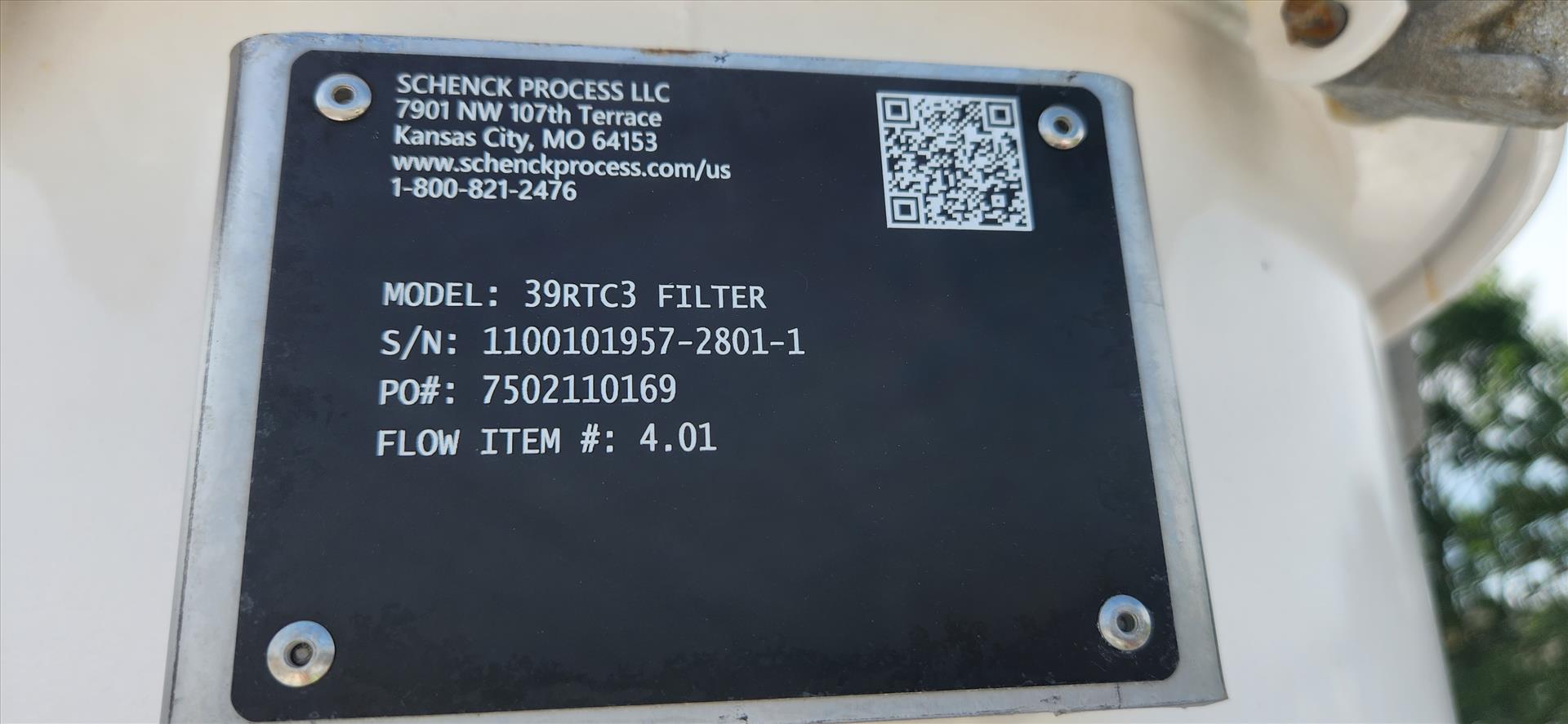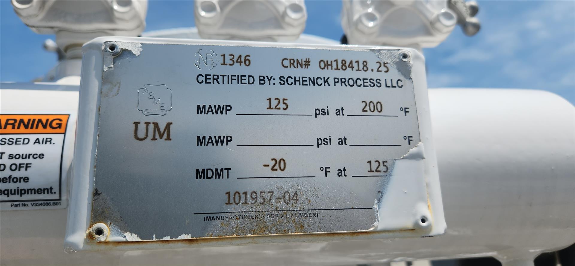 Schenck Process LLC Style III filter, mod. 39RTC3, ser. no. 1100101957-2801-1 (2021) 125 psi at 200F, 10 hp, Bindicator c/w 0.75 hp air lock and stand (pea and wheat blending)