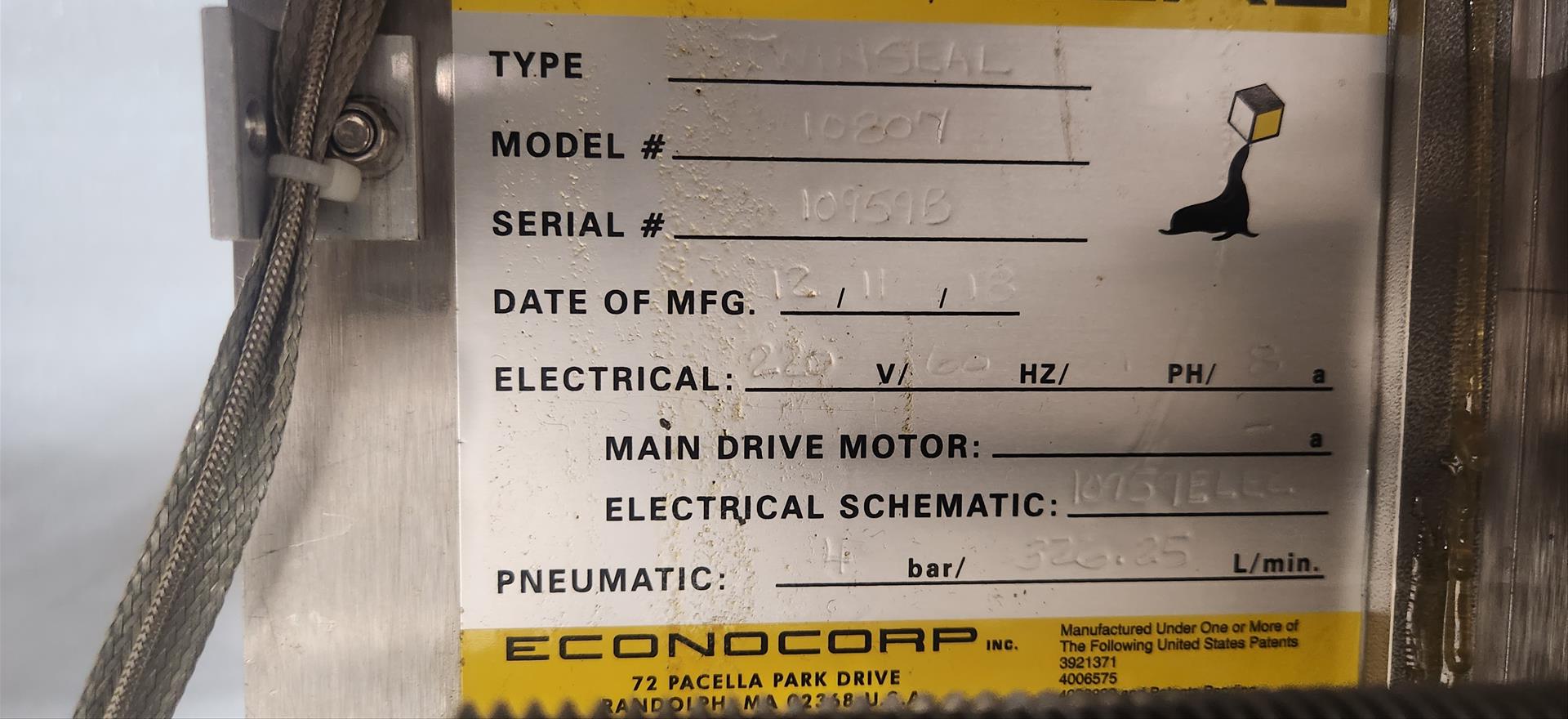EconoSeal Twin Seal carton sealer, mod. 10807, ser. no. 109593 [Loc. B5, Greenhouse]