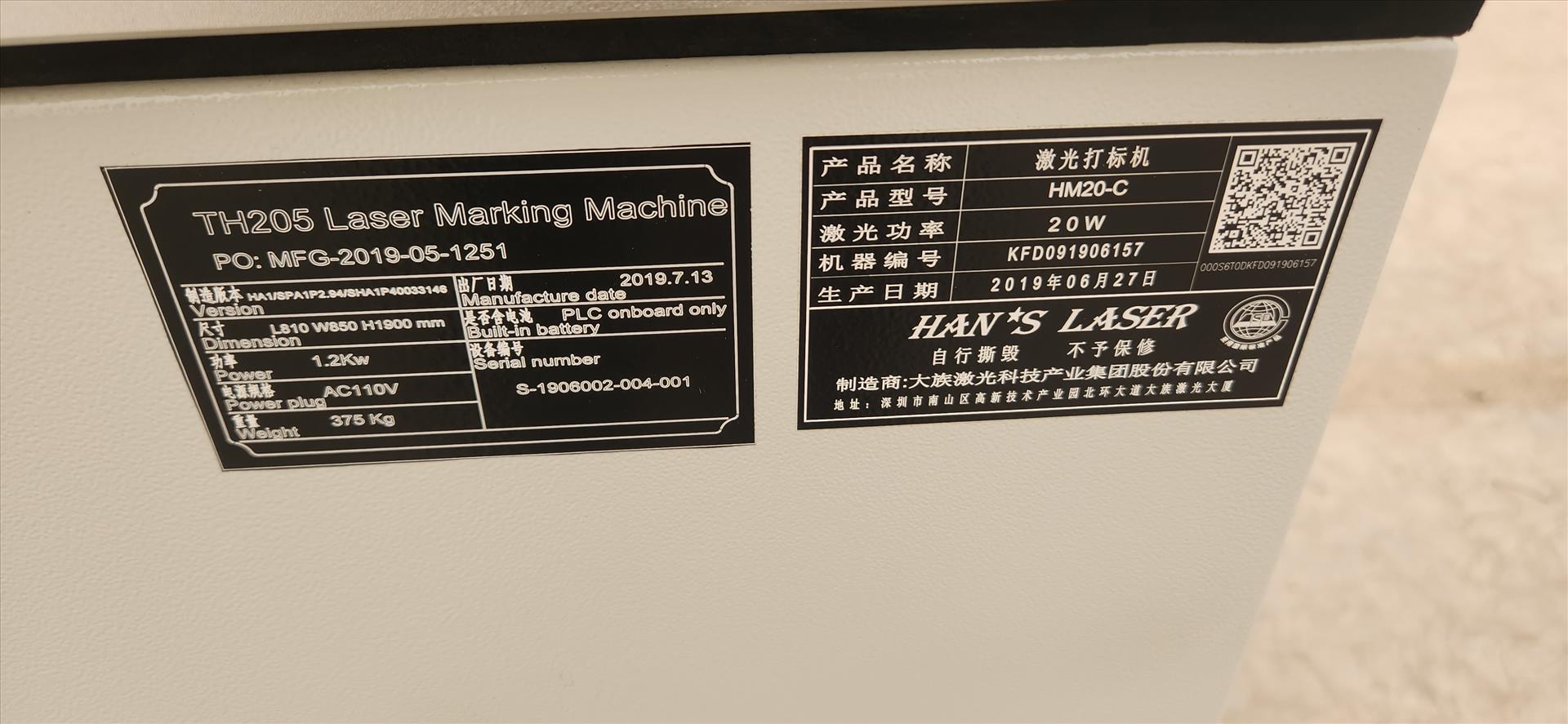 Han's laser marking machine, mod. HM20-C, ser. no. 1906002-004-001 (2019), 20W, NEW [Loc. Receiving Quonset]