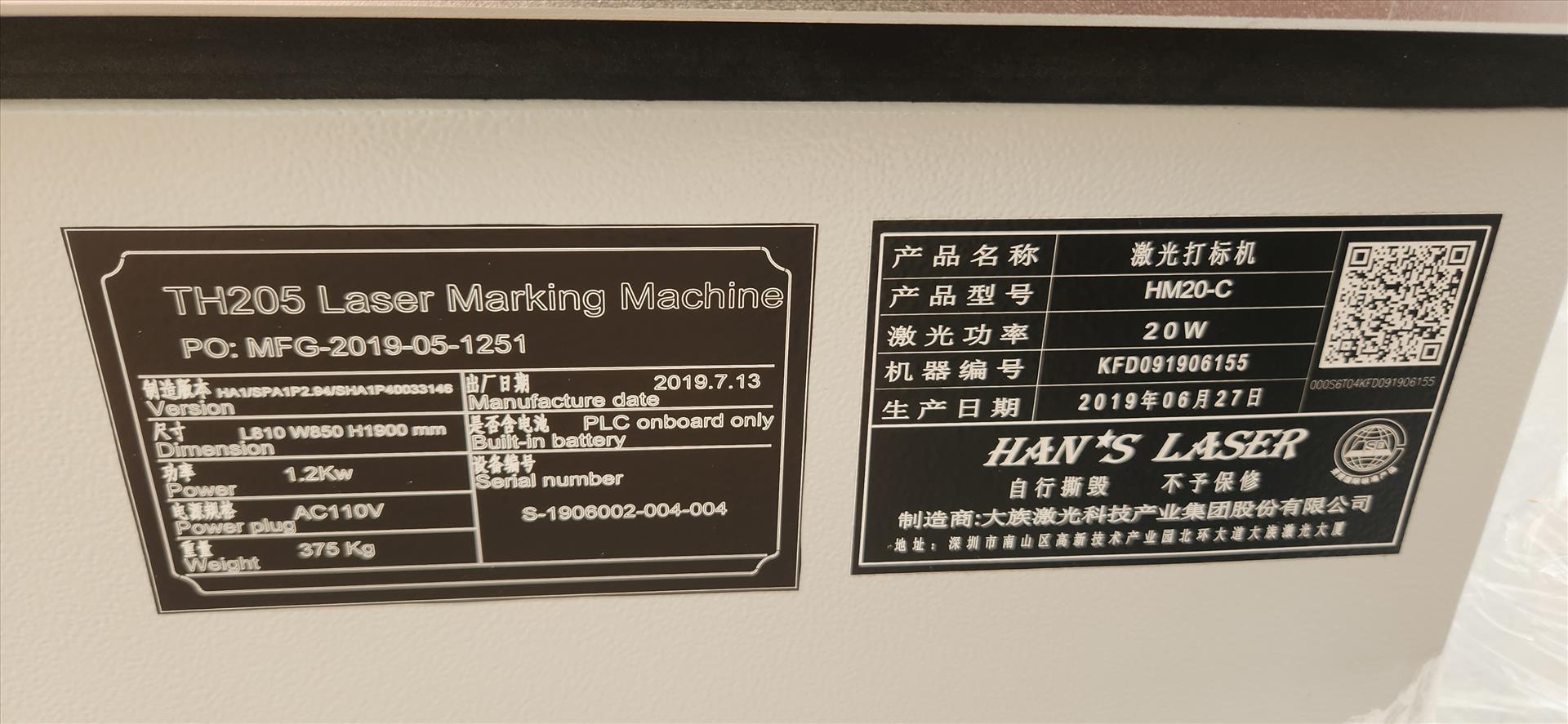 Han's laser marking machine, mod. HM20-C, ser. no. 1906002-004-004 (2019), 20W, NEW [Loc. Receiving Quonset]