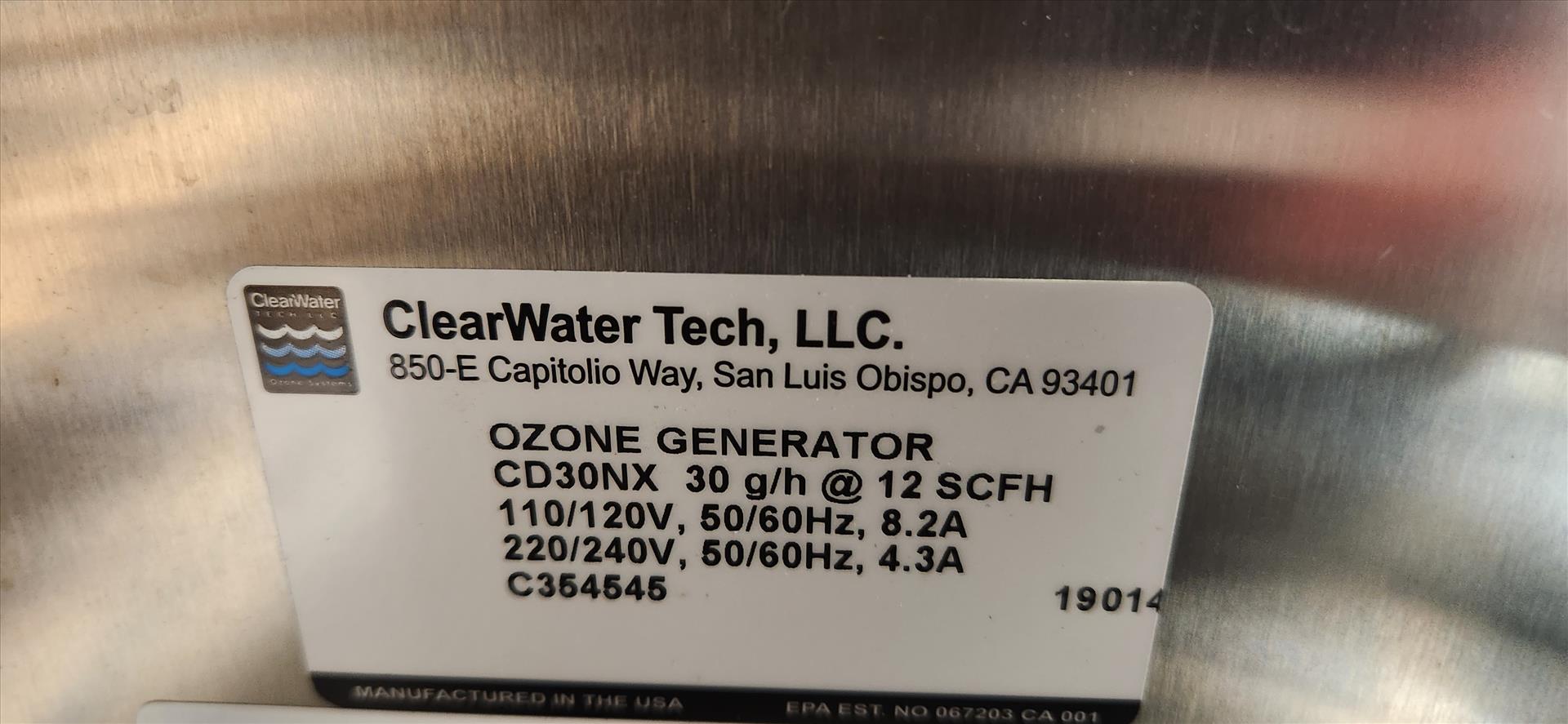 Aerous2 oxygenation equipment w/ CO30NX ozone generator, 30 G/H and ClearWater OCD-11 catalytic ozone destruct [Loc. B5, Greenhouse]