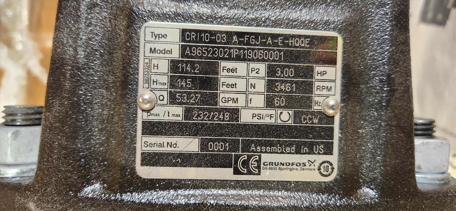 Grundfos pump, mod. A9852302P119060001, type. CRI10-03 A-FGJ-A-E-H00E, 3 hp, NEW [Loc. B5, Greenhouse]