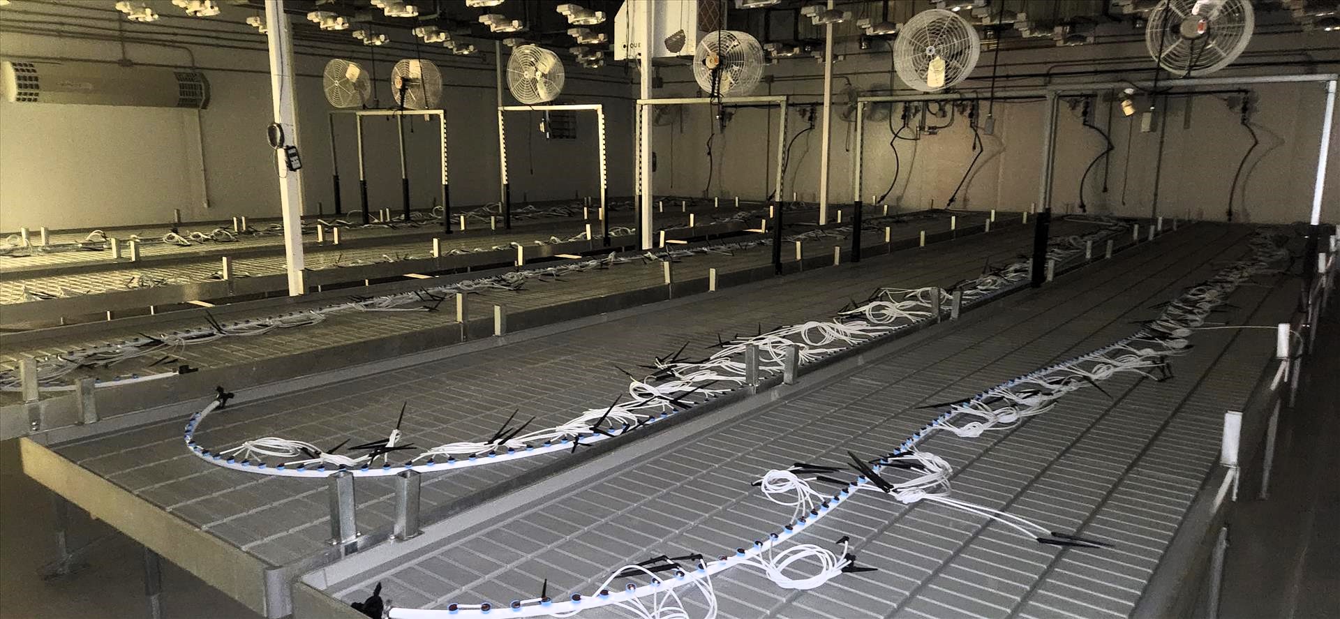 contents of grow room, incl.: (6) ebb and flow grow benches, approx. 66 in. x 42 ft. ea., (72) P.L. NXTLP HPS grow lights, 1000W, (2) Elemental Air EA-T-WM-G2 air purifiers, (12) Shaeffer 24 in. fans, (1) Quest dehumidifier, misc. irrigation piping w/ drip lines (due to space limitations, ebb and flow grow benches may require complete disassembly to remove from grow rooms) [Loc. B2, Flowering 2A]
