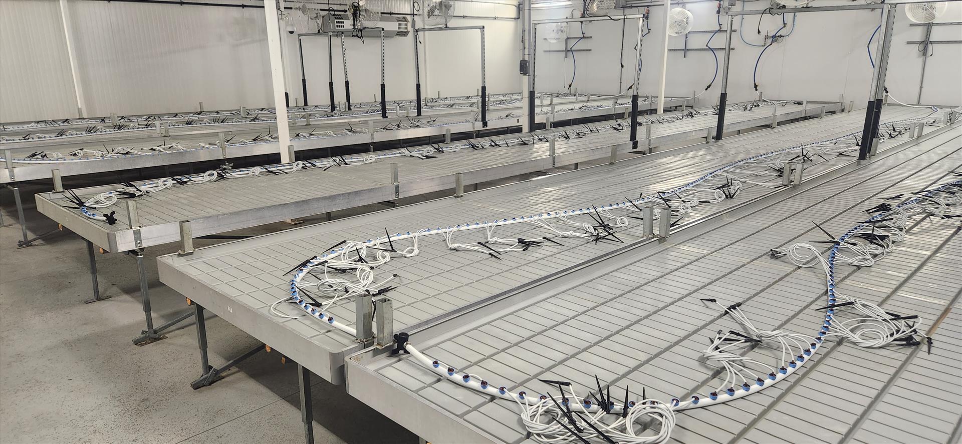 contents of grow room, incl.: (6) ebb and flow grow benches, approx. 66 in. x 42 ft. ea., (72) P.L. NXTLP HPS grow lights, 1000W, (2) Elemental Air EA-T-WM-G2 air purifiers, (12) Shaeffer 24 in. fans, (1) Quest dehumidifier, (1) Big Ass fan, misc. irrigation piping w/ drip lines (due to space limitations, ebb and flow grow benches may require complete disassembly to remove from grow rooms) [Loc. B2, Flowering 2B]