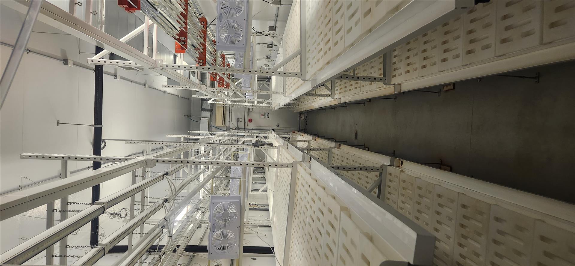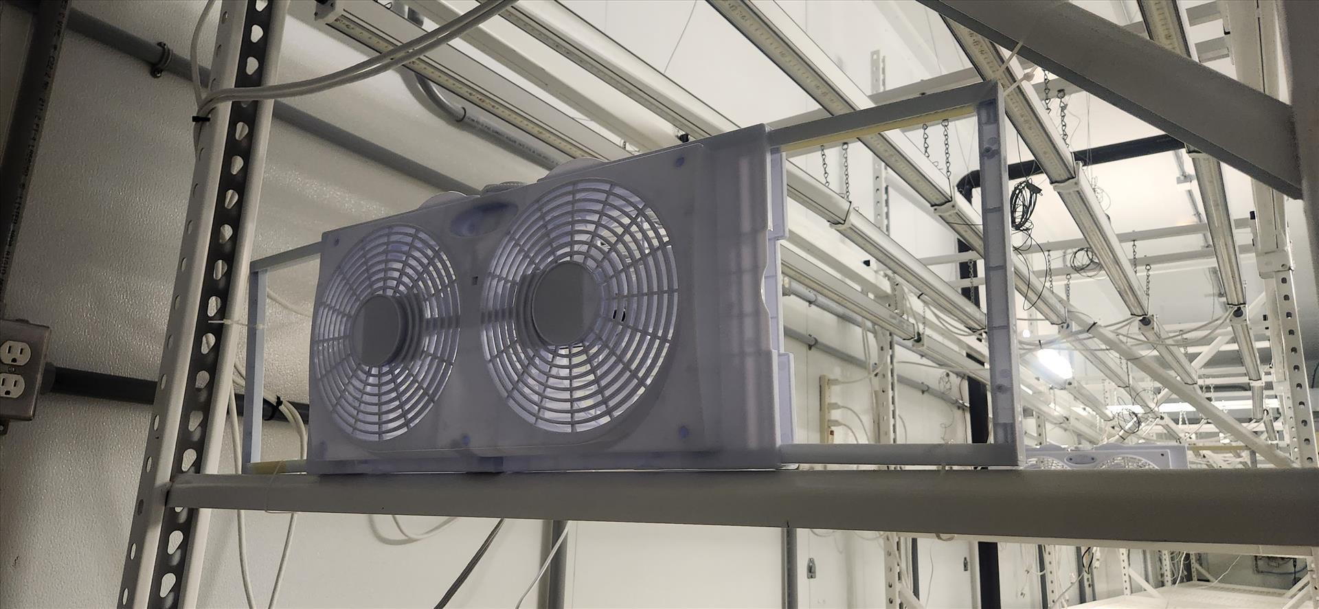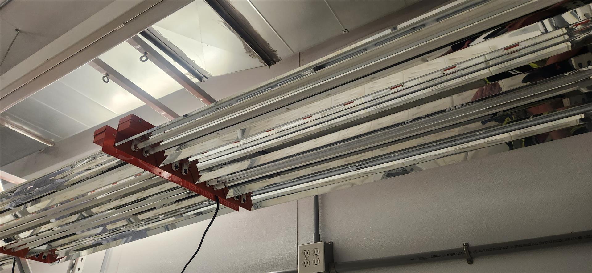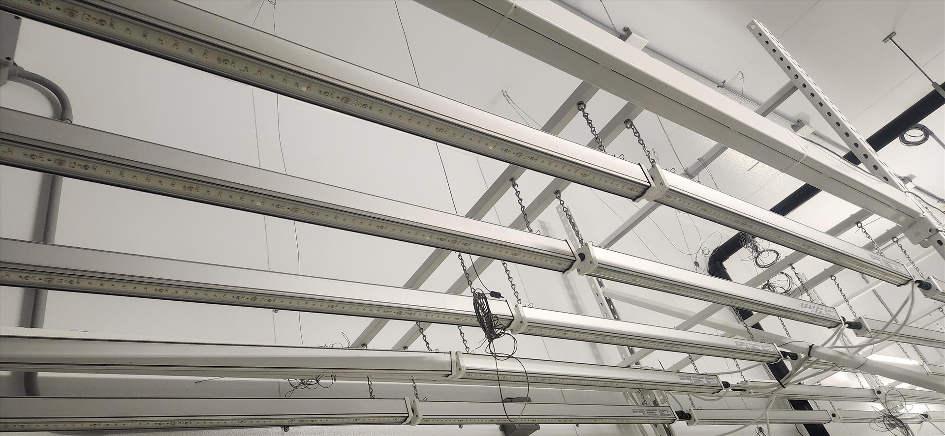 contents of grow room, incl.: (20 sec.) Greenhaus grow racking, approx. 4 ft. x 8 ft. x 10 ft. high c/w LED and Florecent Quantum lighting, (1) vent sock [Loc. B2, Vegetative 2D]