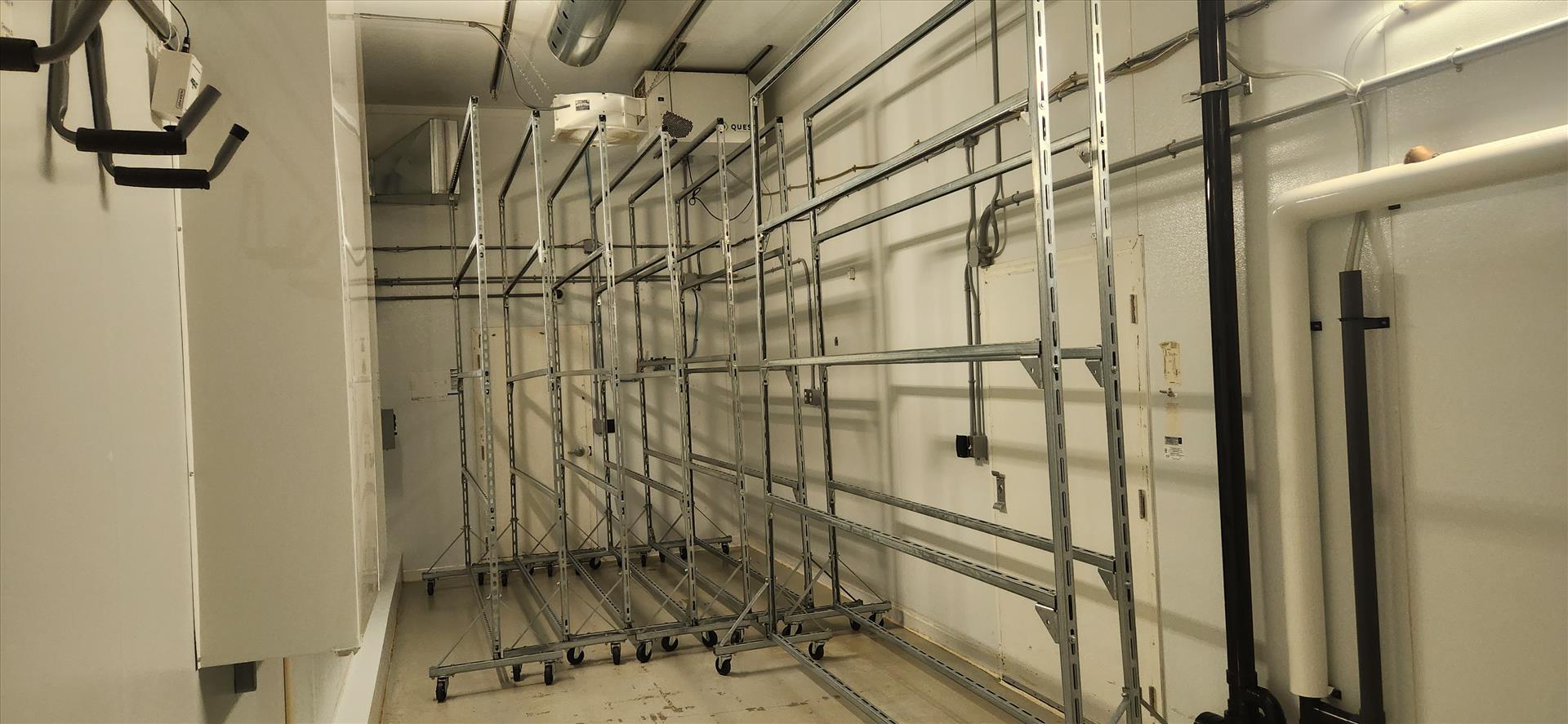 contents of drying room, incl.: (6) drying racks, approx. 11 ft. high w/ casters, (2) Quest dehumidifiers, (2) Shaeffer 24 in. fans [Loc. B3, Drying 3I]