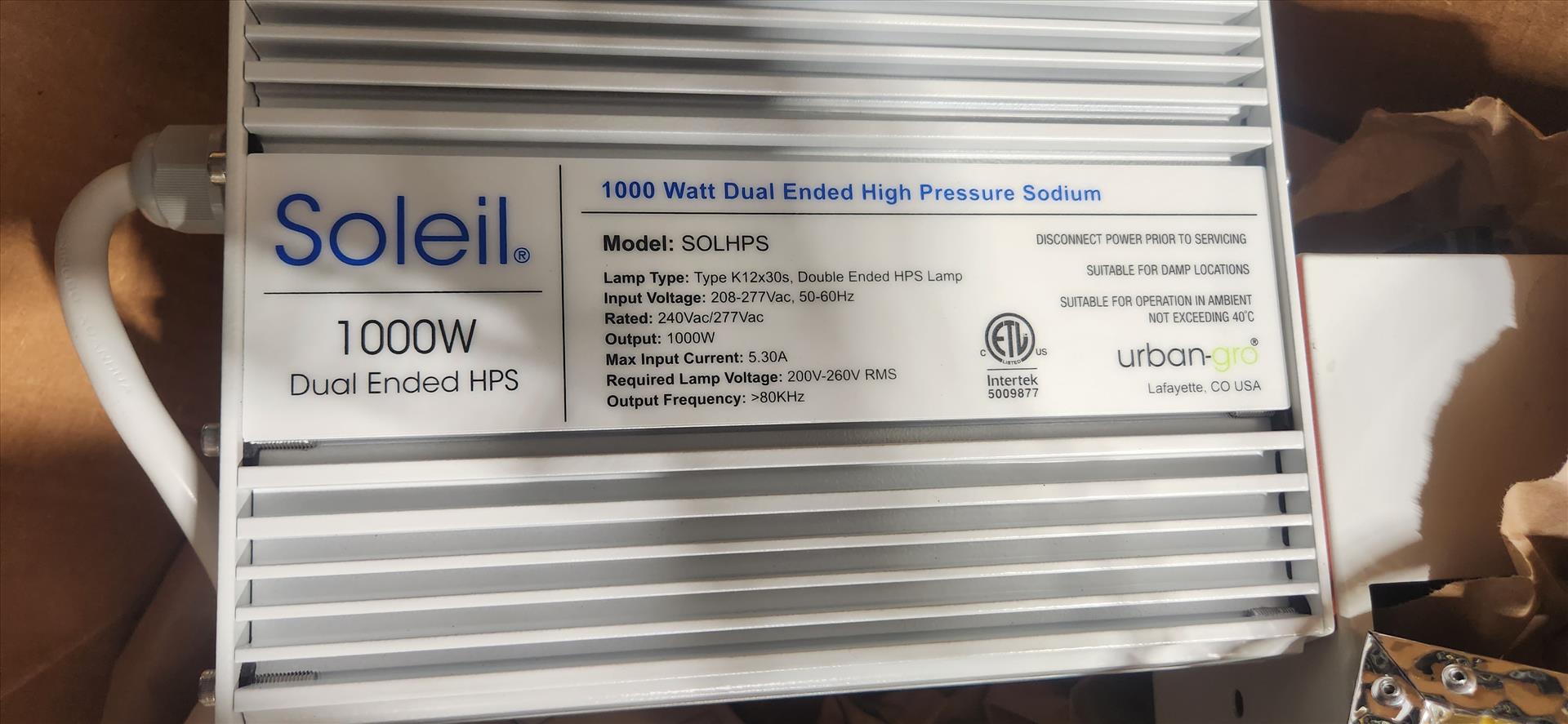 New Urban HPS grow light, mod. Soliel SOLHPS, 1000W, dual ended high pressure sodium, NEW [Loc. B5, Greenhouse]