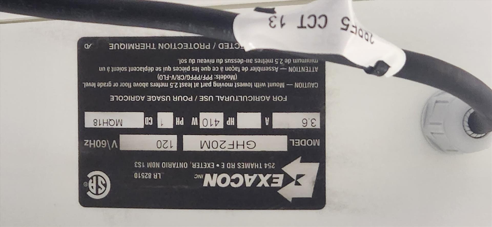 (6) Exacon 20 in. fans, mod. GHF20M (rigging required) [Loc. B4, Vegetative 3]