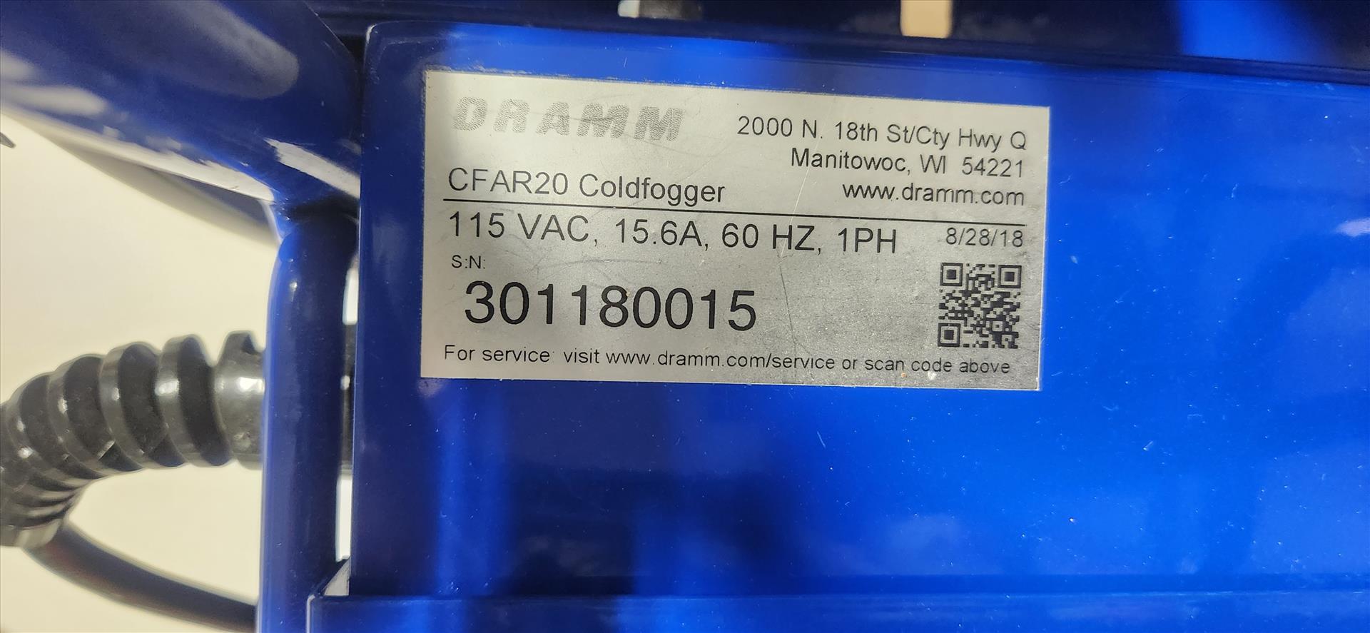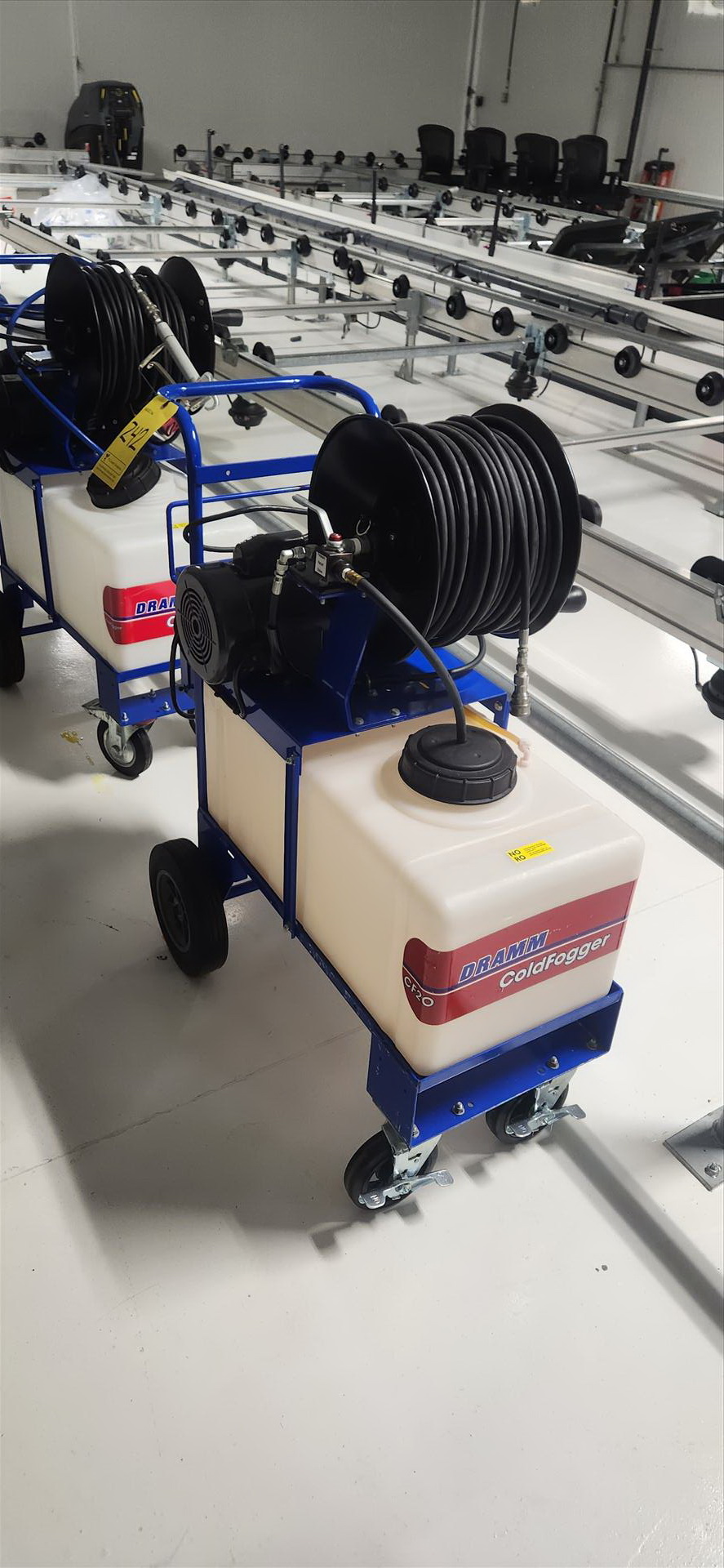 Dramm fogger cart, mod. CFAR20, ser. no. 301180015 (2018), 1 hp pump, 18 gal. tank, hose reel [Loc. B4, Vegetative 8]