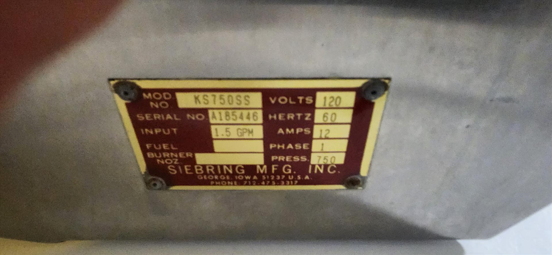 Kruser wash cart, mod. KS750 ser. no. A185446, 1.5 hp pump, 25 gal. tank, hose reel [Loc. B4, Vegetative 8]